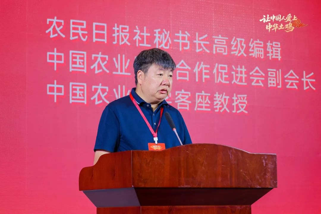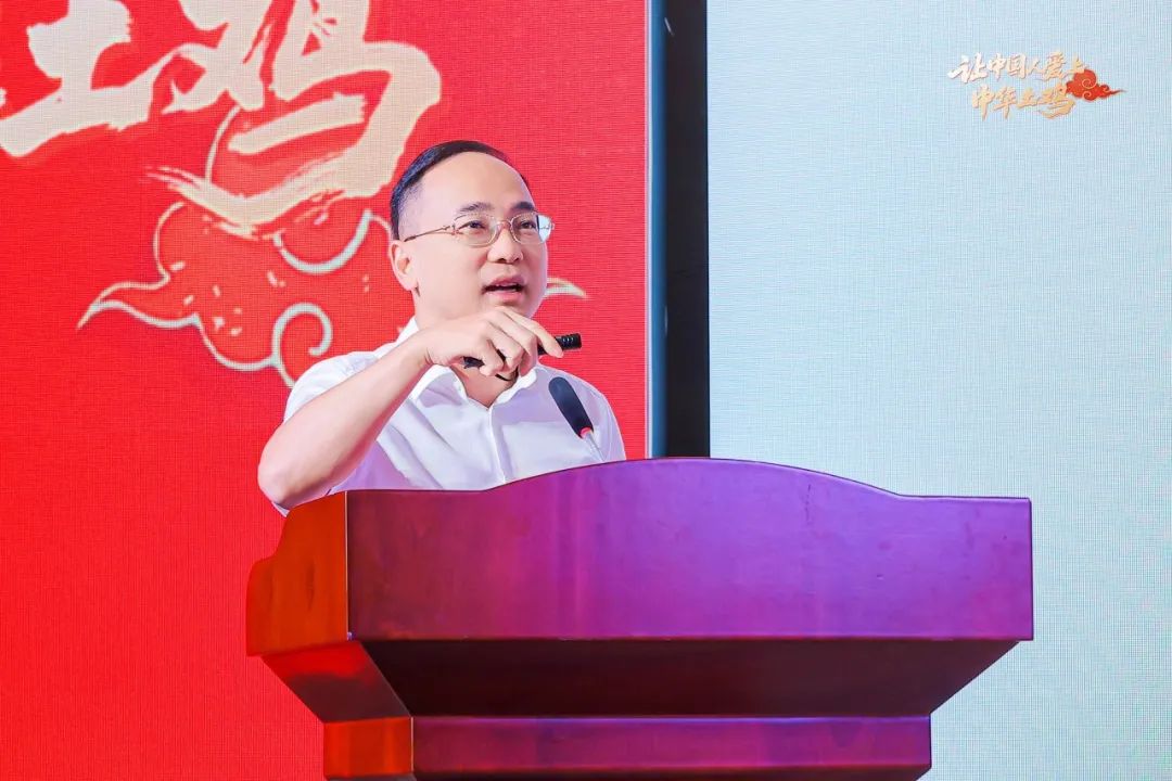 农民日报社秘书长高级编辑、中国农业国际合作促进会副会长、中国农业大学客座教授焦宏发表致辞。他认为,在多元化、个性化消费的时代,新兴土鸡产业也迎来了前所未有的发展机遇。“中华土鸡产业基地”的共建,是顺应市场需求、推动产业发展的重要举措。并对新兴土鸡产业的发展提出期望和建议,要坚持绿色发展理念、加强科技创新驱动、强化品牌建设、促进产业融合发展。