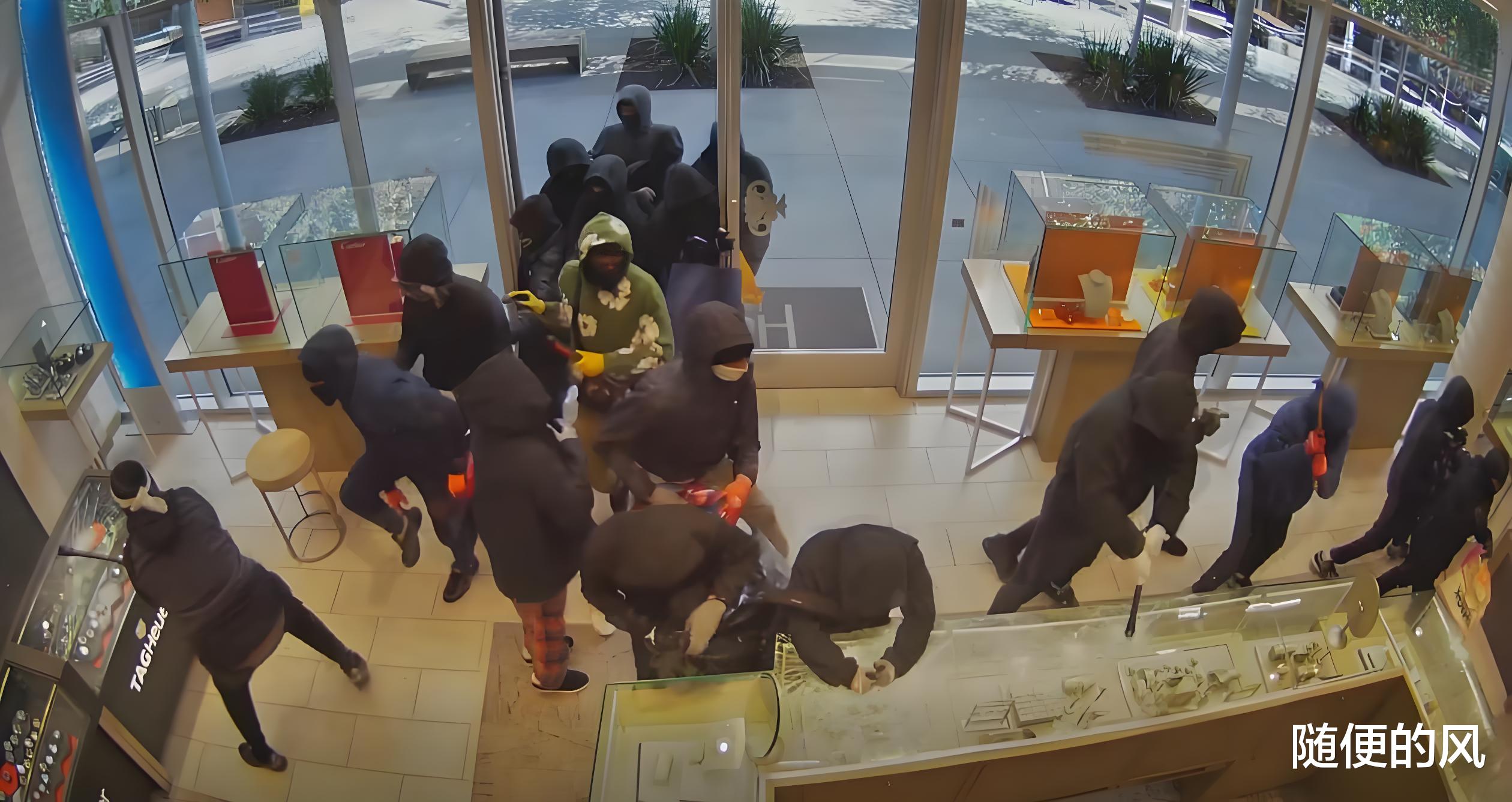 当你看到加州珠宝店那段监控视频时,脑子里冒出的第一个词是不是这个?二十个蒙面暴徒,有人负责持枪开路——对,你没听错,“至少两名劫匪持枪开路”(来源:NBC报道),有人负责用锤子撬棍砸柜台,剩下的提着空袋子,像在超市抢购打折商品一样冲进店里