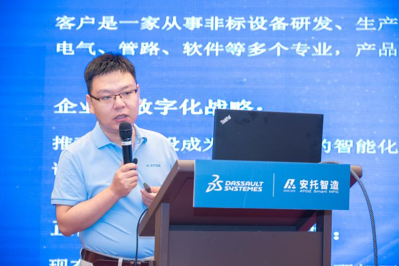 案例分享深入,启迪转型智慧会议期间,安托业务咨询总监强晓勇分享了国内某新能源商用车如何以协同管理为抓手,以协同设计为方法,创建一个以提升质量、缩短周期为目标的研发平台。同时,他还介绍了某非标设备企业如何通过数字化工艺系统建设支撑公司向先进制造、高端制造和智能制造型企业转型升级,达到国家智能工厂试点示范项目要求,实现《智能制造能力成熟度模型》四级的成功案例。