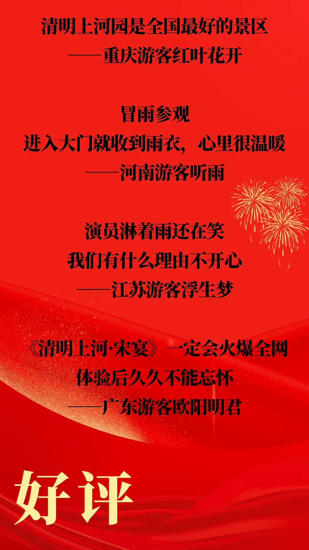 但清明上河园对文化的坚守、对游客的深情,永不落幕。演出是视觉的盛宴,服务是心灵的港湾;文化是传承的根脉,感动是相遇的光芒。