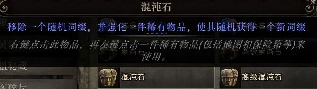 混沌石 (Chaos Orb) ,简称C 。基础计价通货,主要用于交易常用物品。