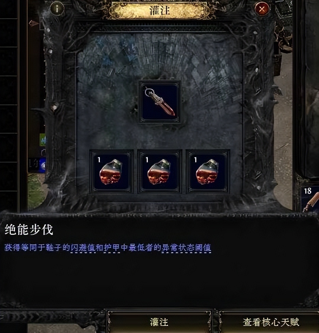 涂油:国服名称灌注,可以给项链额外增加一个 特殊天赋词缀。各种词缀由不同的液化情感组合使用。在游戏中打开天赋盘后,按ALT查看不同天赋需求。