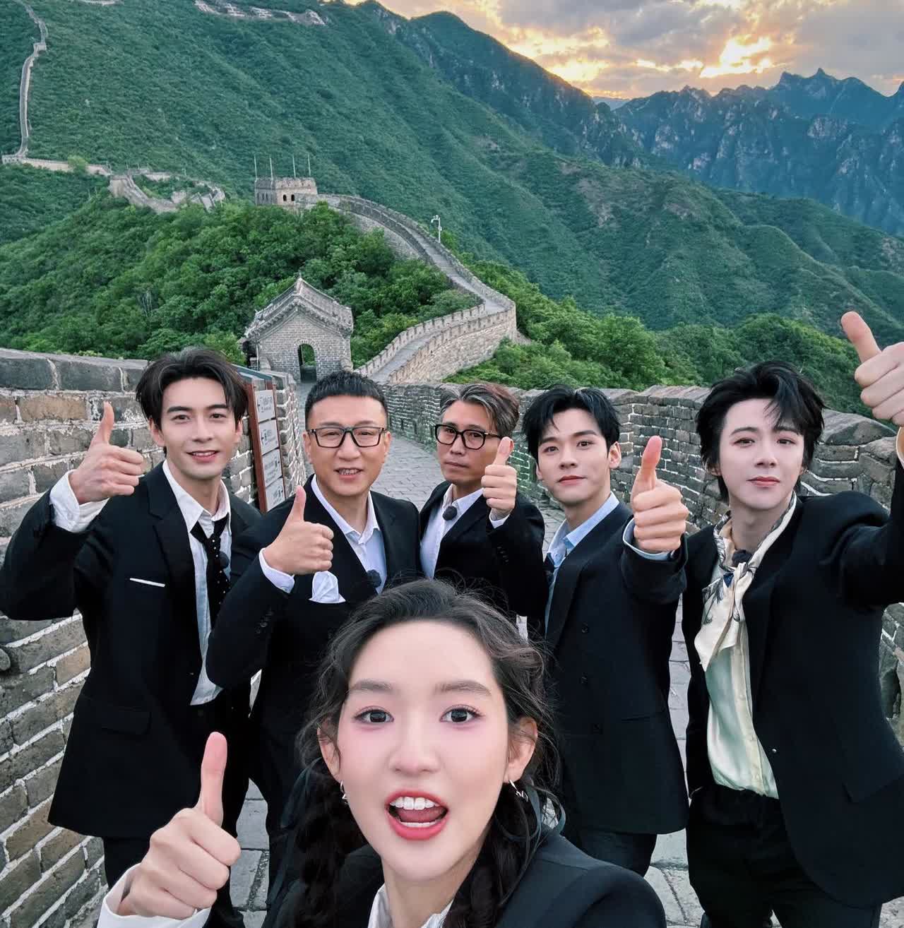 《地球超新鲜》嘉宾搞团建,犹如王玉雯领着一群哥哥卖房子。 今天王玉雯发了照片,原来是《地球超新鲜》几个嘉宾一起在长城上录节目。 嘉宾阵容真的很不错,李乃文、孙红雷、刘宇宁和陈赫、龚俊等,内容非常搞笑,很好看。 今天的照片有个细节,那个刘宇宁抹了多少粉底液啊,白的发光,明显与哥几个不是一个色号。