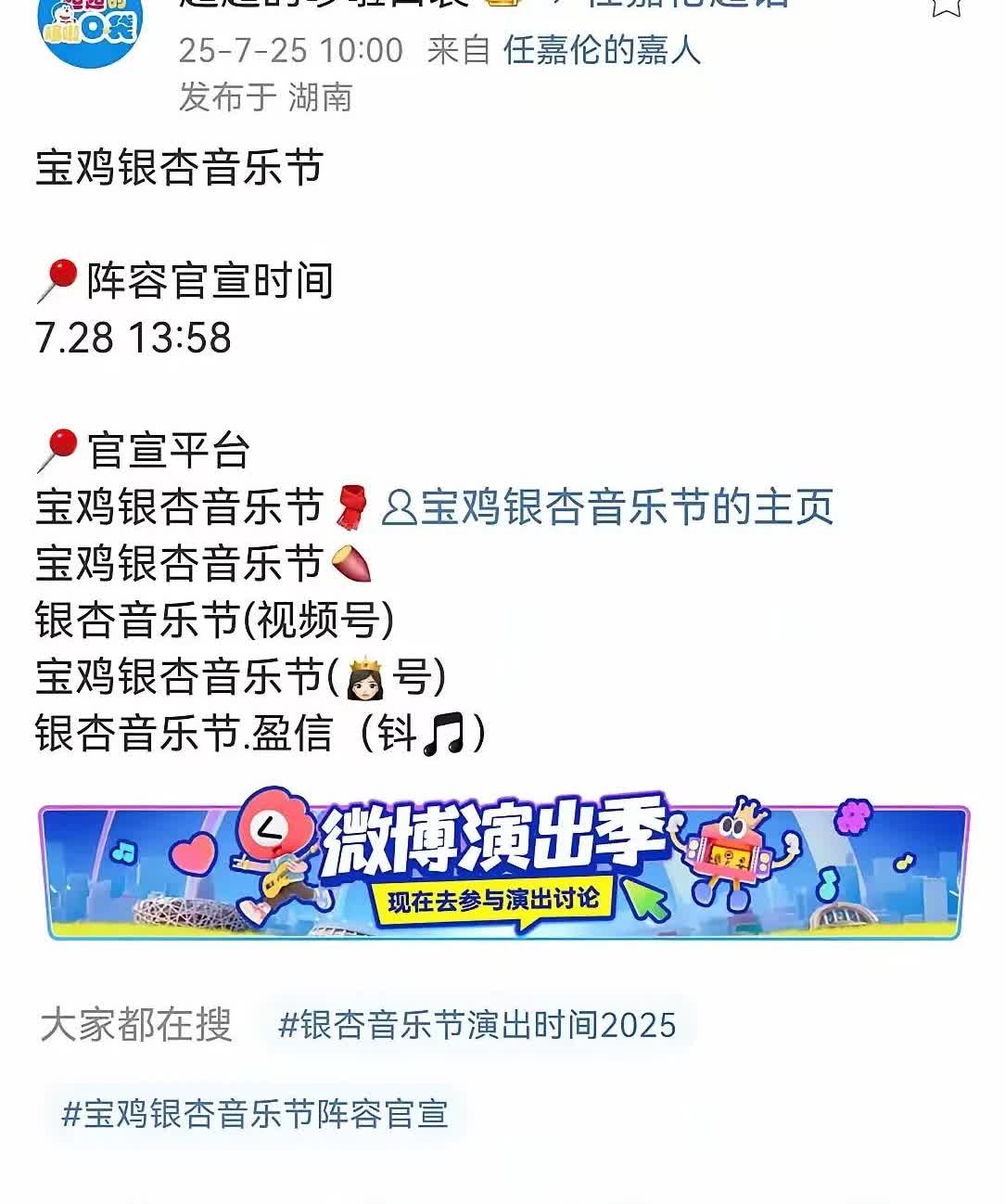 原本以为有8月2号的贵阳音乐节已经很不错了,没想到宝鸡的音乐节也有任嘉伦!有人说