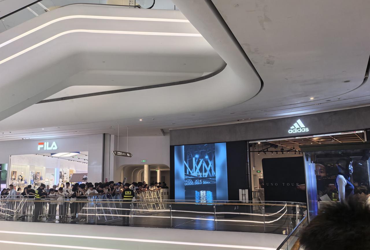 深圳红色暴雨警告,哈登的球迷依然纷纷聚集深业上城,活动14:30才开始,我拍摄这