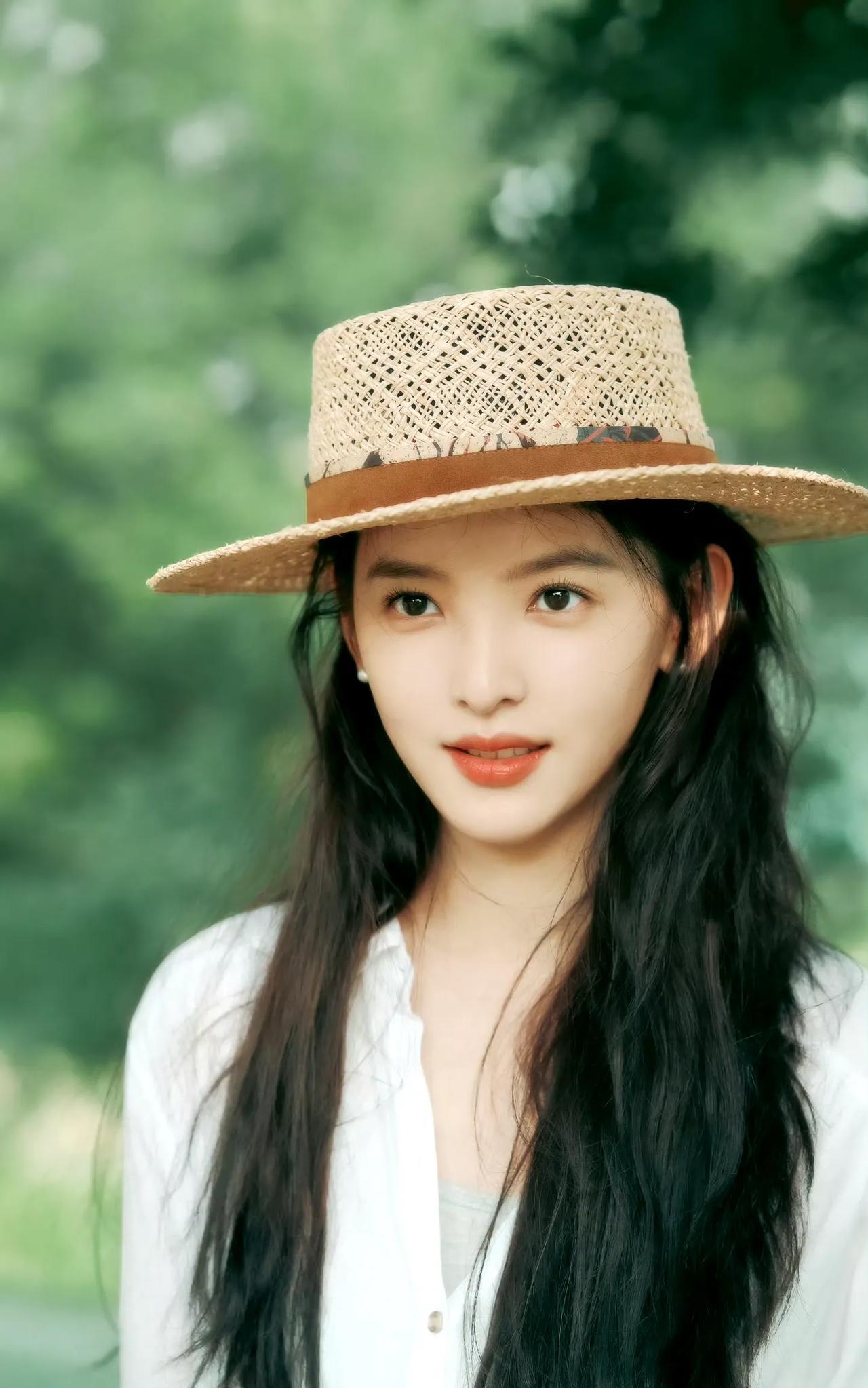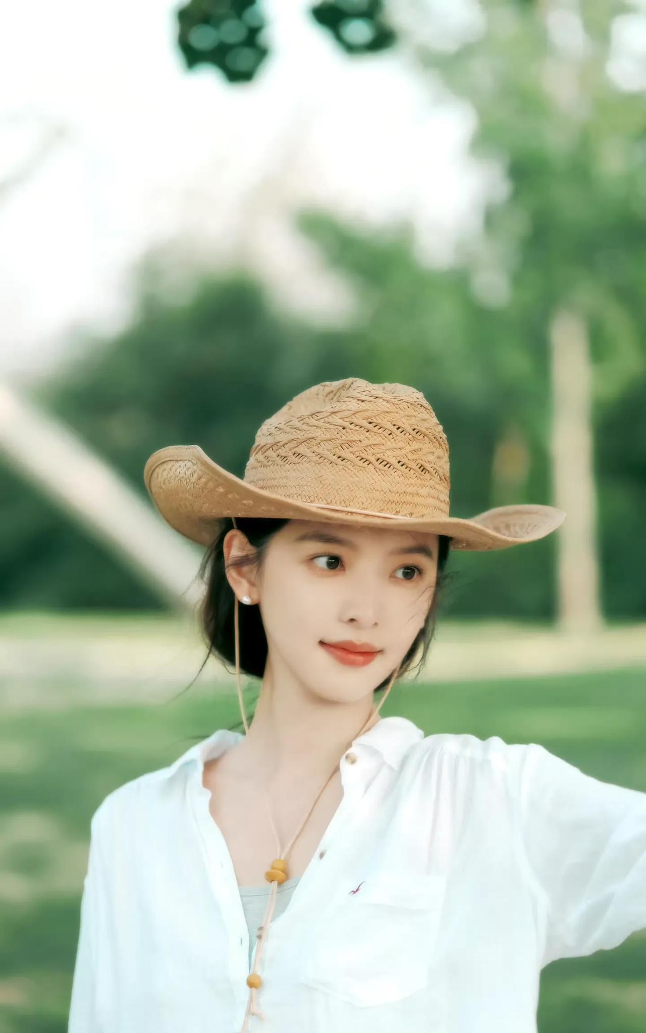 #章若楠#草编帽筛落碎金日光,白衬衫晕染草木清辉,发丝随微风轻摆间,藏着夏末最悠然的松弛步调 。