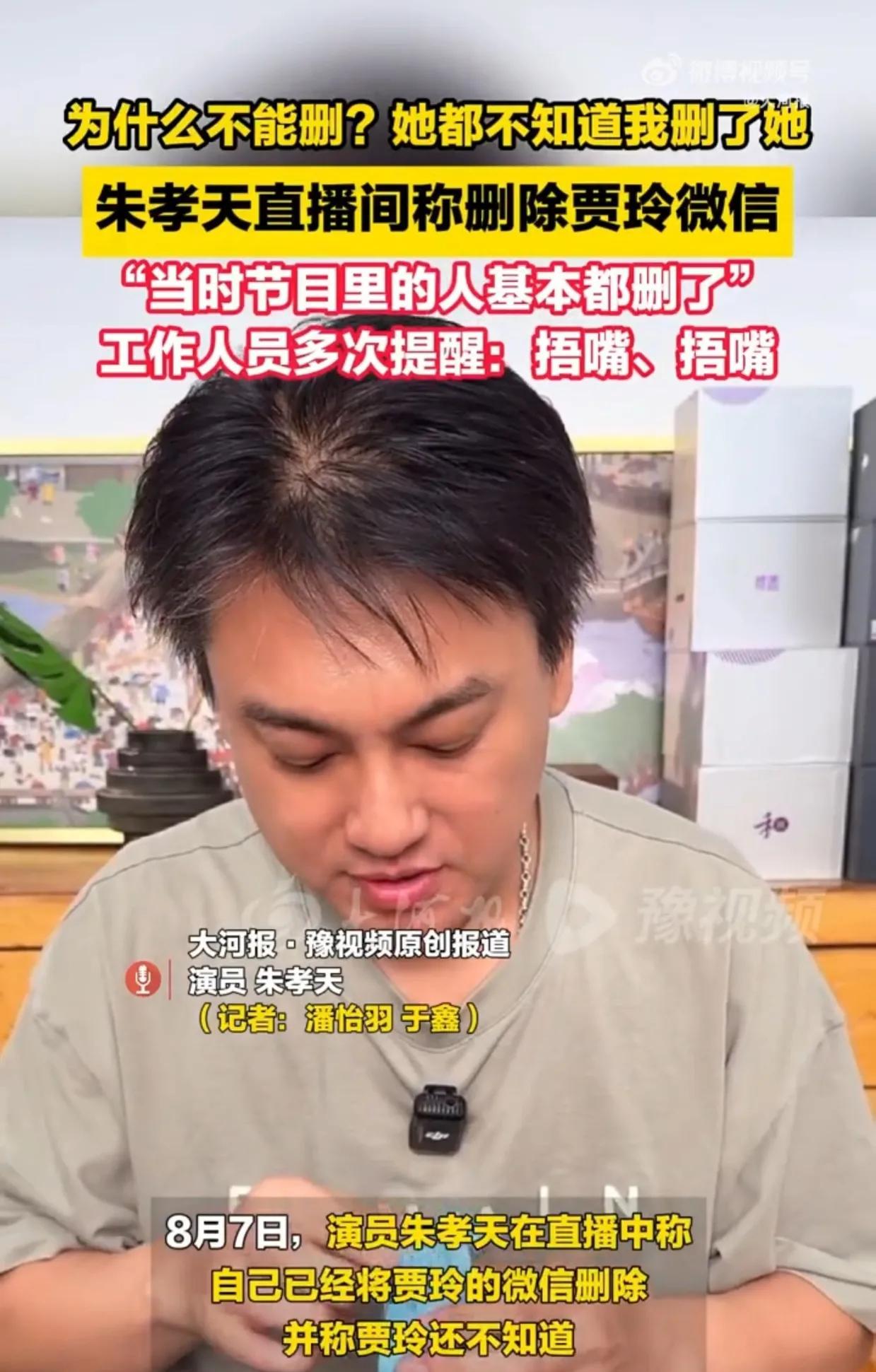 朱孝天自曝已经删了贾玲,“我为什么不能删贾玲,她都不知道我删了她,当时节目里的人都删了。” 朱孝天此前曾回应删好友一事,他表示:“如果说你加我过了两年三年,你都没有对我有任何的需求的话,我就会觉得我对你来说是没有用的,我就不把你留在我的生活空间里面。我删人不是因为我生气,是因为他不需要我,我又怕麻烦到别人。” 这段耿直的发言,网友却有不同看法: 他好像找到了新赛道; 说得人家在乎似的,人家可能真不想知道; 前两天说把明道删了来着,这又拿贾玲来耍存在感呢; 心比针尖,不红也是有道理的。