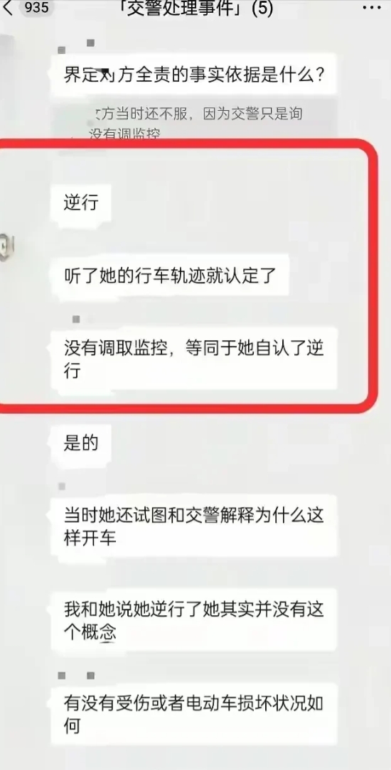 "我听交警的”后续:男生已找好律师,不会和解,聊天记录曝光 "千万不要和解,一定要追究到底,不然我怕会被气死!" 一位网友如此提醒那位戴眼镜的男生,现场已经够憋屈的,后续处理千万要坚持住。 男生开始的表现,用一如既往的复读机精神,避免落坑,保全了自己,虽然赢得了万千网友的称赞,但这称赞怎么看都非常的无奈,甚至于有悲凉的意味。 男生为什么只有表现的这样软弱,才能在这风声鹤唳中免受可能的"污蔑"? 8月4日,广州某区。 戴眼镜的男生骑着电动车等红灯,这时突然从对面驶来一辆电动车,电动车不偏不倚的撞到了男生骑的车。 那辆电动车的骑手,是一位女生。 双车相撞,那女生立即下车,拿出手机开始拍摄,摄像头都怼男生脸上了。 "你为什么撞我?"女生上来就颠倒黑白。 男生不急不躁:"我听交警的。" 女生举着手机,"是不是你撞了我?你撞人了还想打人,是吧?" 男生:"我听交警的。" 女生:"你撞了人,还理所当然,是吧?“ 男生:"我听交警的。” 女生:"你是不是觉得有理了?" 男生:"我听交警的。” 女生:"先不说谁对谁错,是不是你撞了我?" 男生:"我听交警的。" 女生:"你咋活到现在的?我就想不明白,你撞了我,没关系是吧?" 男生:"我听交警的。" 女生:"你咋这么牛,这么优秀呢?" 男生:"和你没关系,我只听交警的。" 看这段对话,大家什么感觉? 女生语言丰富,显得咄咄逼人,男生化身复读机得,惜字如金,以不变应万变。 男生肯定看了武大杨某媛的"恶劣行径",知道言多必失,知道绝不能被女生牵着鼻子走,更知道不能让她影响了情绪,否则会被全力针对。 那位肖同学就是被杨某媛的话术所蛊惑,心不甘情不愿的写下了认错书,反倒成了对方最有利的把柄。 撞车的这位女生,拳拳打到棉花上,没抓住男生的漏洞,但她始终不认为是自己的错。 "抛开事实不谈,男生就没一丁点错吗?" 交警来了,简单的了解一下,再看看现场情况,事故很简单,责任很明确,女生逆行负全责。 奈何女生不服,和交警也要争论不休,她绝对不认错。 没办法,交警决定带双方回交警队,再做进一步处理。 谁知半路上,那位女生竟然偷偷跑掉了。跑便跑了,事故又不大,两个电动车轻轻撞了一下而已,二三十块钱就搞定。 交警认为事情过去了,当事男生也觉得事情翻篇了。 但那位被断定负全责的女生却没有过去,她将怼脸拍摄的事件过程发布到了网上,大概是想让男生出丑,最好能掀起一轮网暴。 结果却刚好相反,男生是复读机的天花板,五字真言基本毫无破绽。 反倒是女生,被指责为腹黑女,犹如杨某媛二世。 将视频公布出去,惹恼了当事男生,本来都结束的事,偏这小仙女不消停。 这位男生表示,他会给自己维权,对方公布视频侵犯了肖像权等个人隐私,目前已经找好了律师,准备走司法程序。 而男生的聊天记录也披露出来,里面透露了许多现场的细节。 是什么将男生变成这样? 不敢争不敢抢,不敢和女生正面交锋! 说实在的,这是挺悲哀的事。 大家以为呢?
