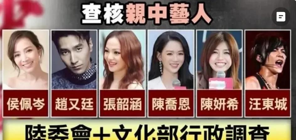 恐吓,拿艺人开刀!台湾省陆委会又开始作妖了! 台陆委会将台艺人欧阳娜娜、侯佩岑、赵又廷、陈乔恩、陈妍希、张韶涵、苏有朋、杨丞琳、文淇、陈志朋、黄曦彦、官鸿、林柏谷、王以纶、陈昊森、完颜洛绒、姜育恒、杨宗纬、汪东城等艺人列入查核对象,原因是这些艺人曾转发央视「中国台湾省」贴文,表达对两岸统一的支持。这些艺人因表达对两岸关系的积极态度而被针对,显示出台陆委会的政治操弄。 台伪政权当局针对台艺人的恐吓这笔账必须得到清算,还有这些爱国艺人必须得到保护!