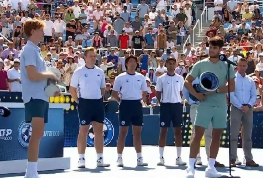 WTA1000辛辛那提站决出男女单打冠军,男单决赛,辛纳对阵阿尔卡拉斯,在开场后