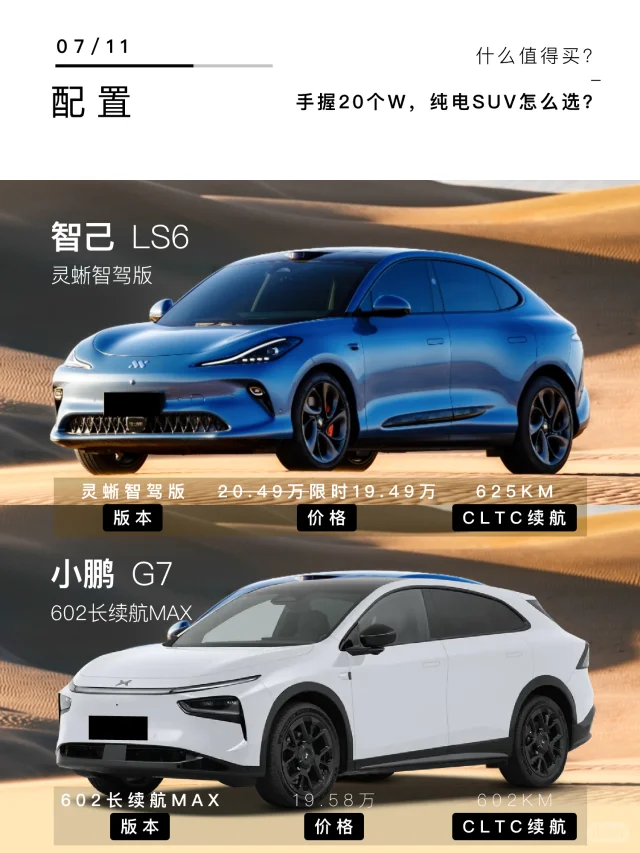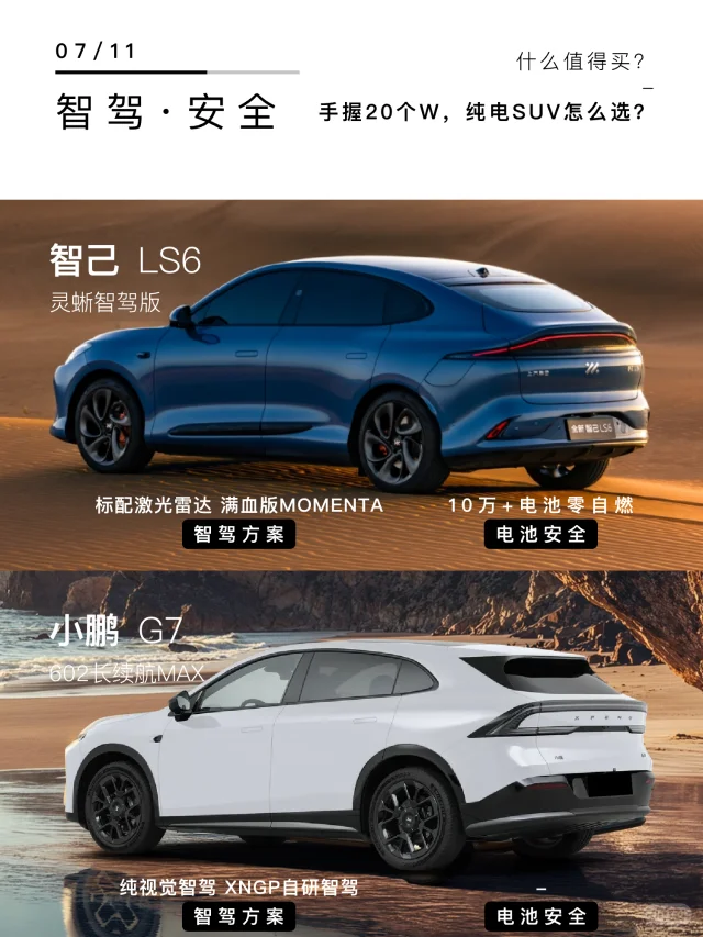 20万级的新能源SUV可以说是卷到飞起,不仅拼续航、拼智驾,还得拼颜值、拼质价比。刚上市的小鹏G7家用取向明显、配置亮眼,智己LS6灵蜥智驾版也放出限时权益价19.49万起,把配置和价格直接拉满