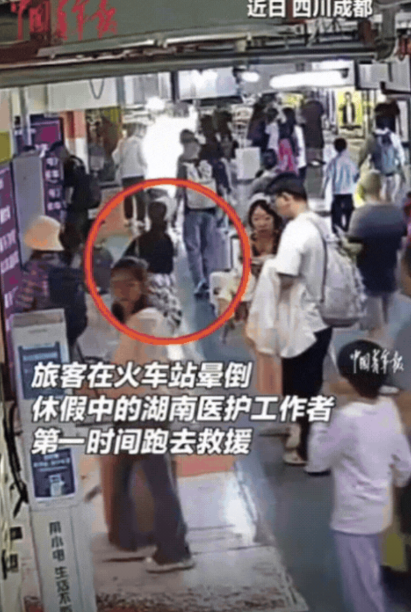 四川成都,女子休假出去玩,刚走进火车站,就听到“砰”的一声巨响,紧接着就传来孩子撕心裂肺的大喊“妈妈”!她急忙跑过去查看,发现这位妈妈已经心脏骤停了,她立马跪地对她进行心肺复苏,孩子在旁边吓得大哭,由于抢救及时,妈妈很快苏醒过来,随后被送往医院。