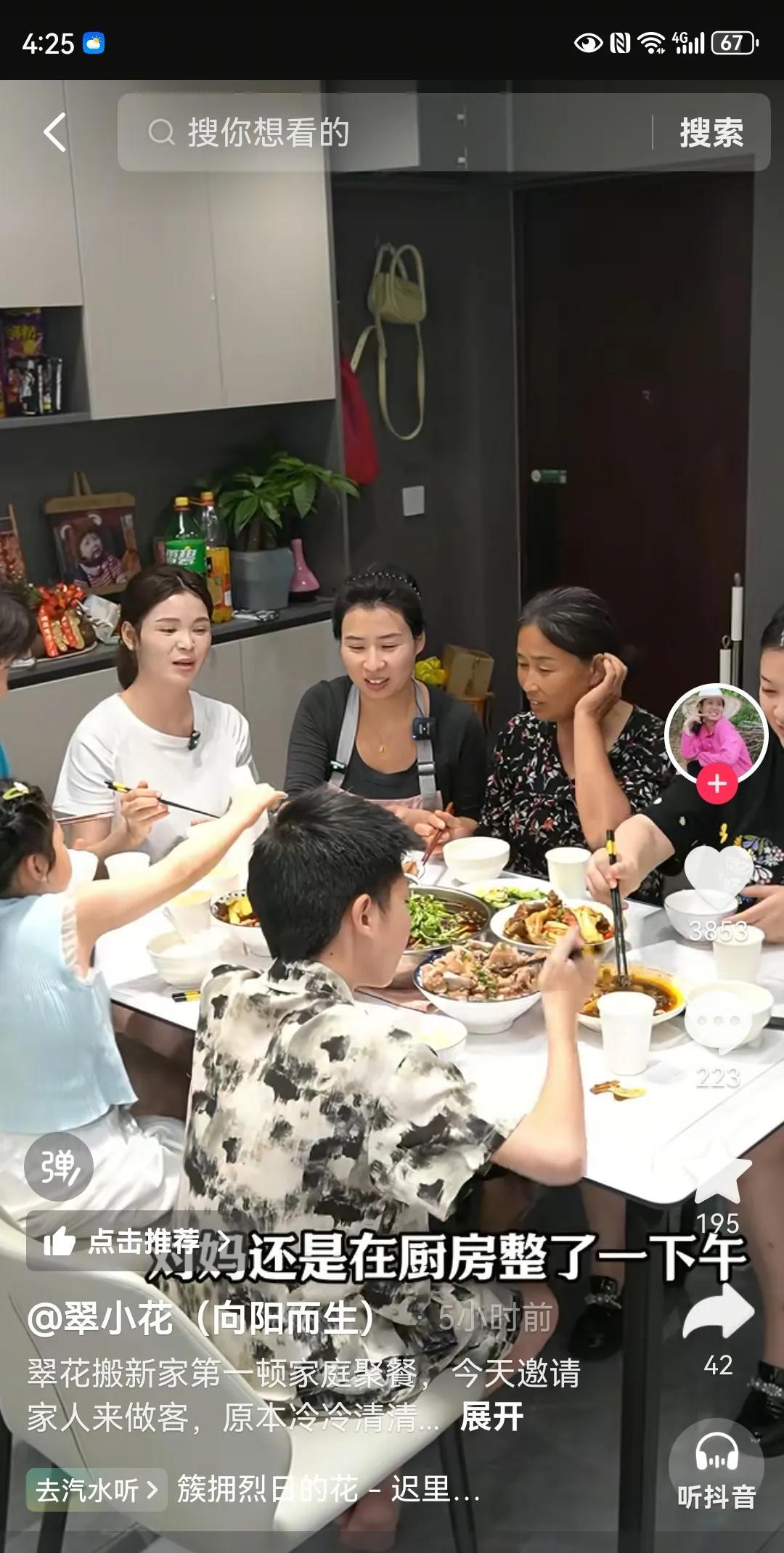 翠花儿离婚后消沉了几天,这又满血复活了。 离婚了,平时家里就只有娘俩,感觉跟冷清。这不,翠花儿把娘家除了父亲,其他几个全叫家里来,娘几个都动手做了好菜,在一起热闹热闹。娘家人聚一起个个都笑眯眯的,特别是她那个二妹,是发自内心的开心。 她家兄弟姐妹四个,老大老二经历了一段婚姻,各自生了一个孩子,现在都离了。老三貌似对婚姻不感兴趣,老四暂时还不到结婚年龄。但这种有三个姑姐,还都是单身生活,跟原生家庭都没分开过的状态,不知以后嫁进她们家的姑娘有没压力?