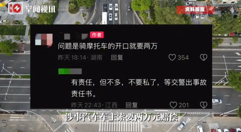 摩托车和汽车全程没有任何接触,但摩托车司机起身后,直接要求对方赔偿2万元,否则这是没法私了,而汽车车主一听顿时不乐意了,直接就报了警。