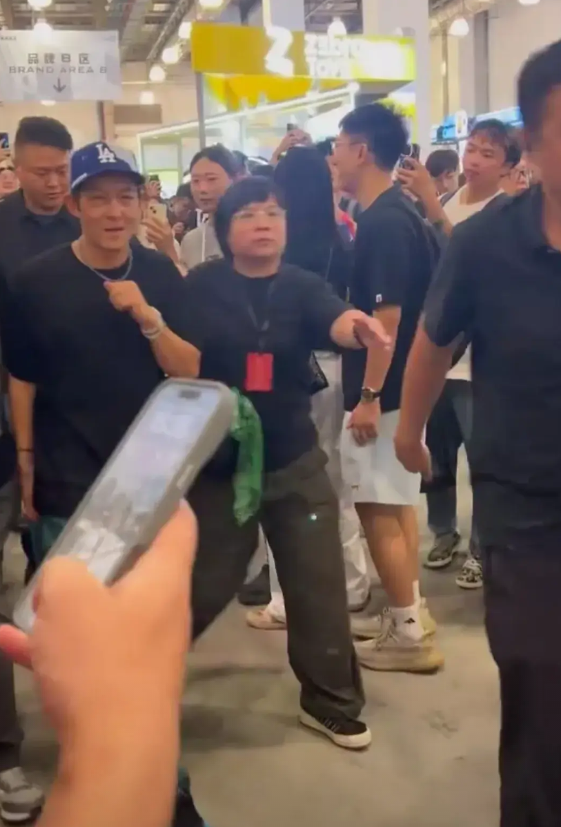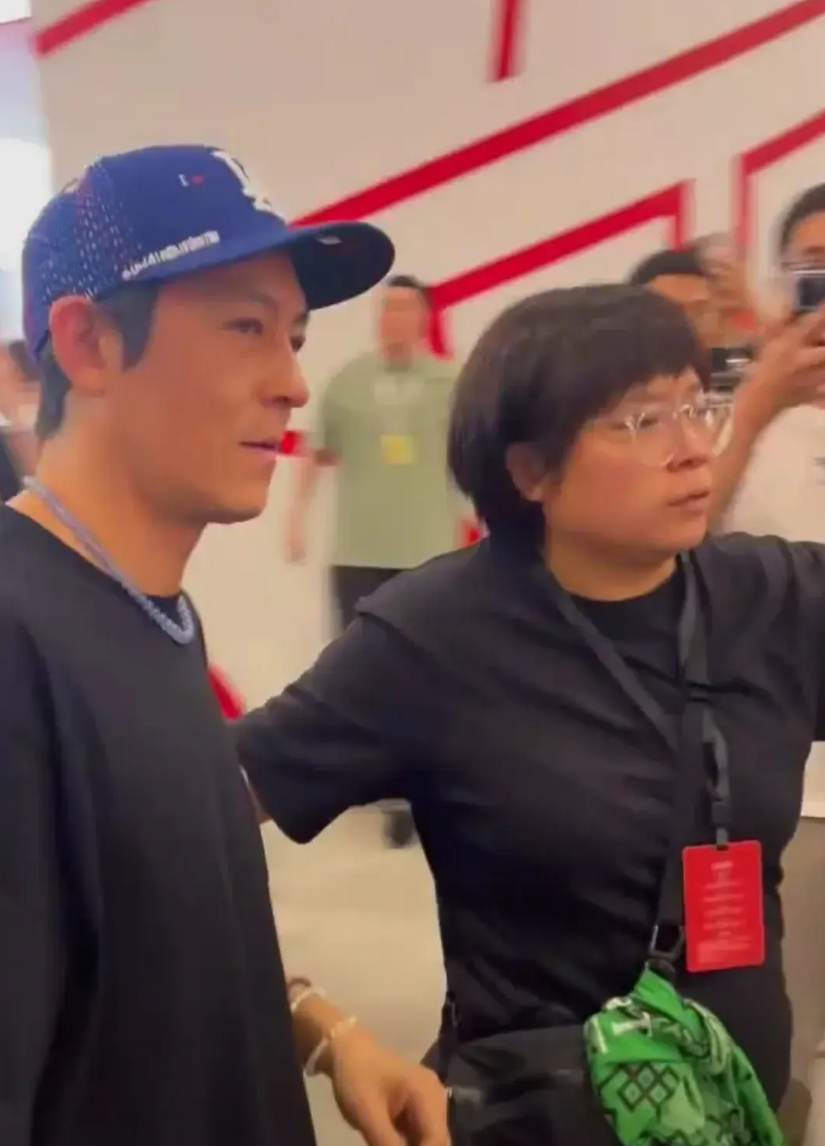 陈冠希高调出席活动现场,一短发女工作人员走出“八两金”的气势! 近日,陈冠希出席活动,戴着蓝色帽子,黑色圆领T恤衫搭配大绿色长裤,这身穿搭十分潮流,尤其是这大绿色裤子一般人真的不敢尝试! 除了著名导演冯小刚喜欢这大绿色裤子,真的很少看到有人敢穿的! 活动现场,一短发女子,脖子上挂着工作证,引导陈冠希进入现场,这短发女子,气场十足,步伐矫健,圆脸短发,戴着眼镜,身材圆润,不仔细看还以是“八两金”重出江湖了!