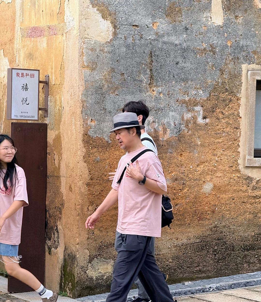 70岁张国立在广东坪山旅游,他穿着粉色T恤,看起来精神抖擞,没有怎么变老,有点矮。