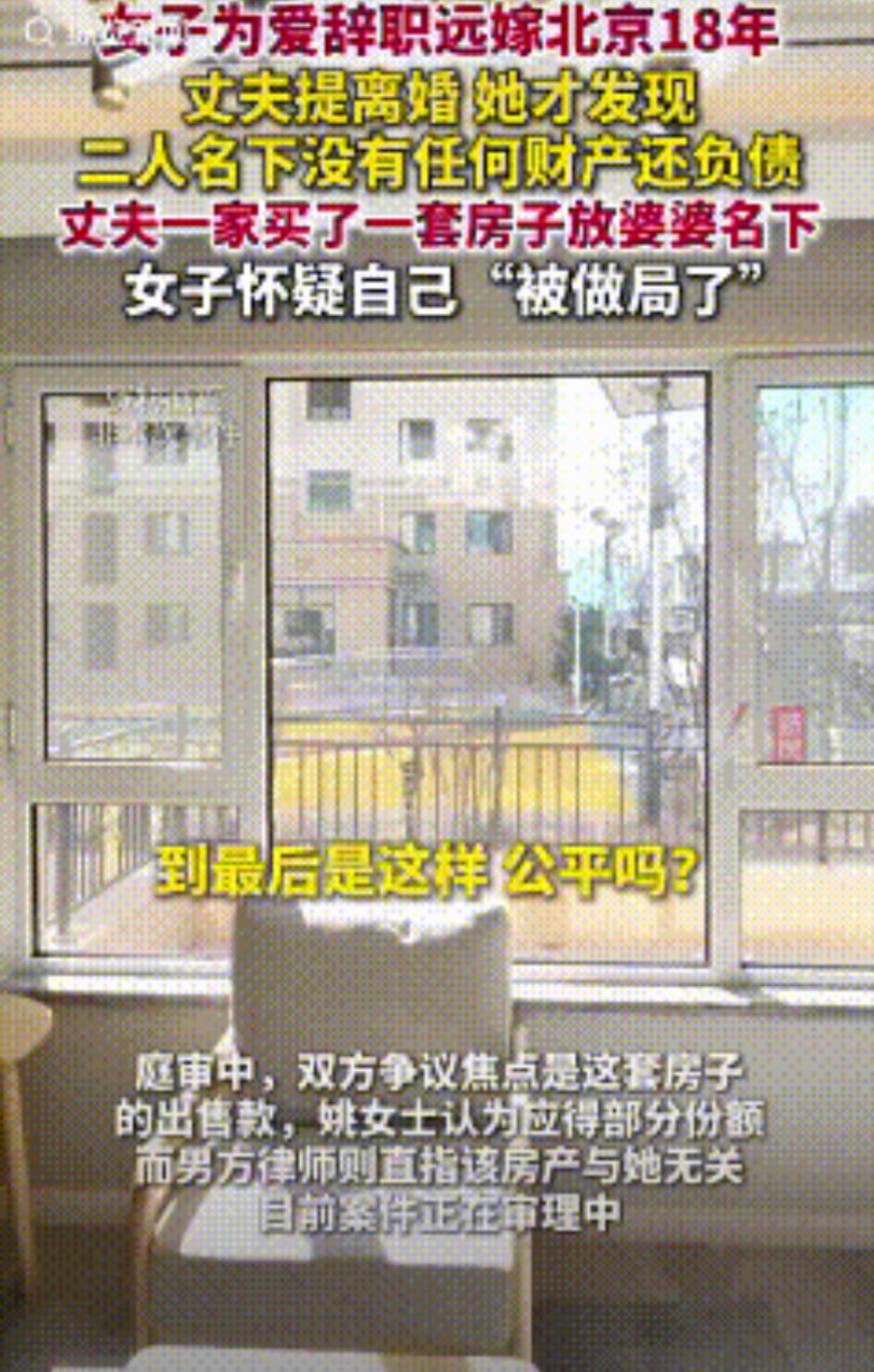 防不胜防!北京,丈夫突然要求离婚,女子要求分割夫妻共同财产,这才发现丈夫卖掉房子后,又跟他父母买了一套房子,还把房子登记在男子母亲名下,女子什么都分不到。女子傻眼:自己从浙江远嫁北京,辞职和丈夫一起打拼,结果没有任何夫妻共同财产,反而换来一身债,公平吗?