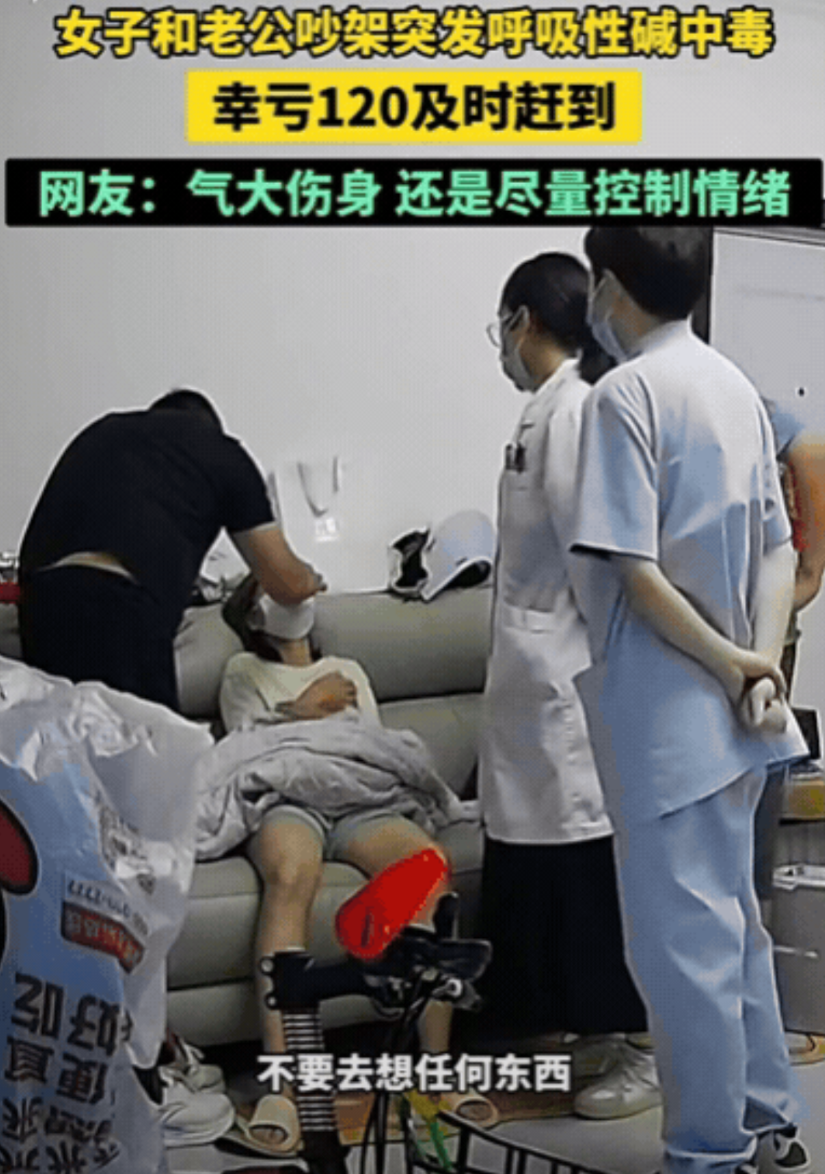 安徽,女子和老公吵架,结果,刚吵了几句,女子就倒在了沙发上,呼吸急促!突发呼吸性碱中毒,老公傻眼了,不知道该怎么办,只能拨打120,幸亏120及时赶到,让女子脑子放空,什么都不要想,女子才算缓过来。网友!气大伤身,还是尽量控制情绪!