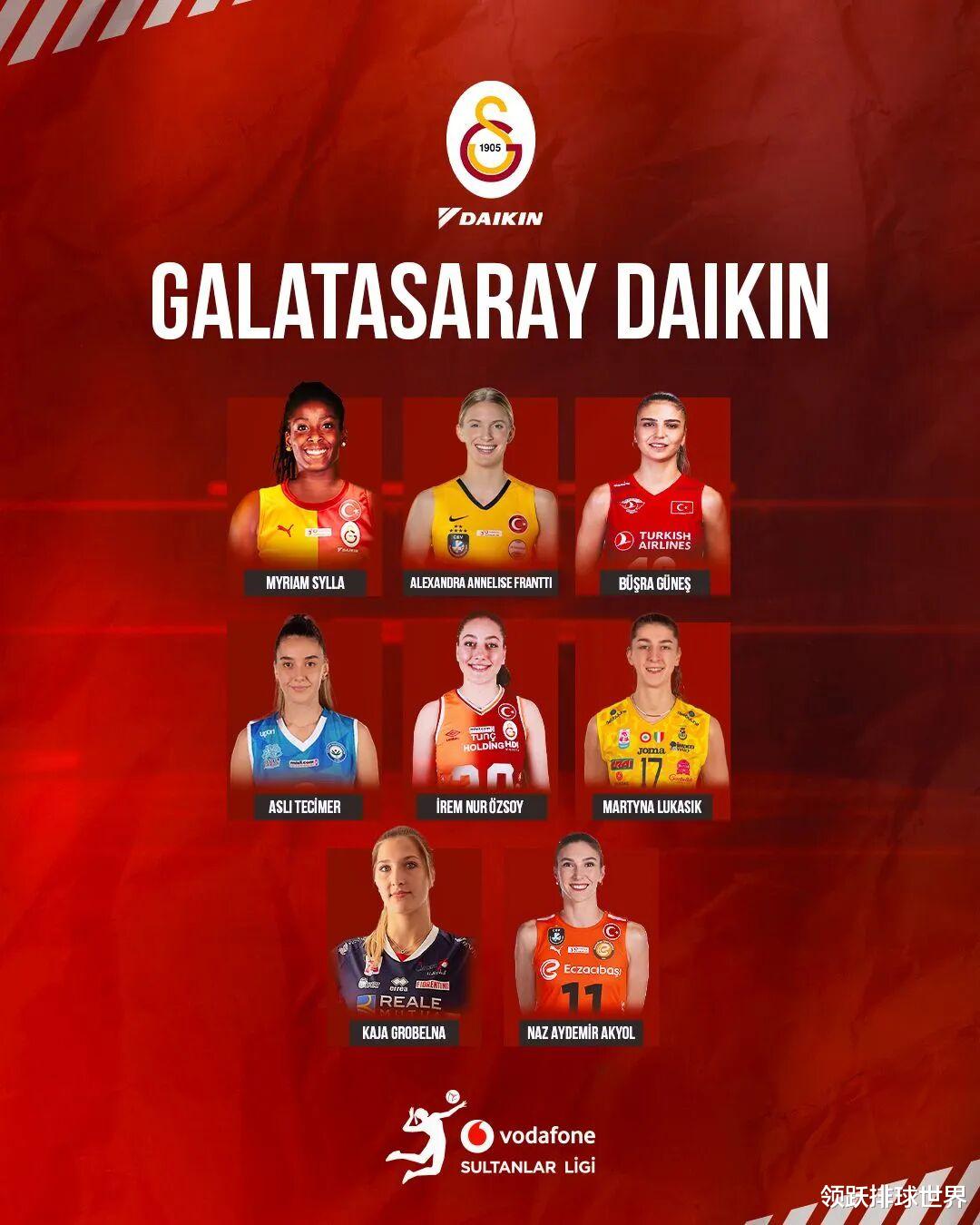 加拉塔萨雷女排(Galatasaray Daikin),新增外援名单:埃琳·蒂默曼(荷兰)、玛蒂娜·卢卡西克(波兰)、米里亚姆·塞拉(意大利)、卡娅·格罗贝尔娜(比利时)、亚历山德拉·弗兰蒂(美国)