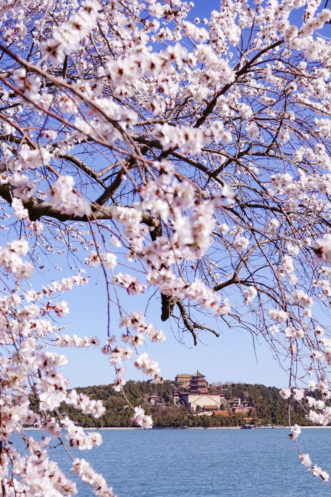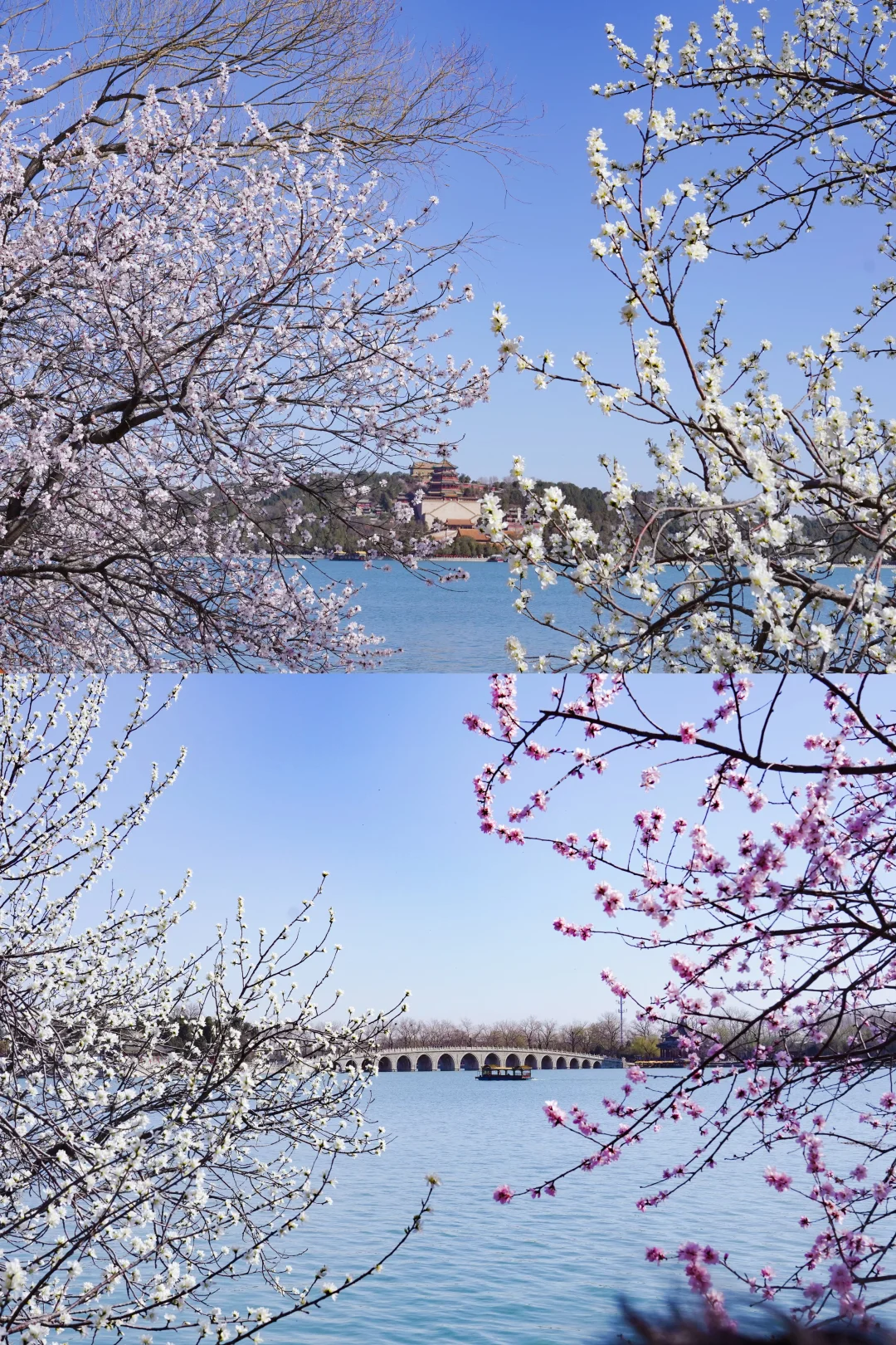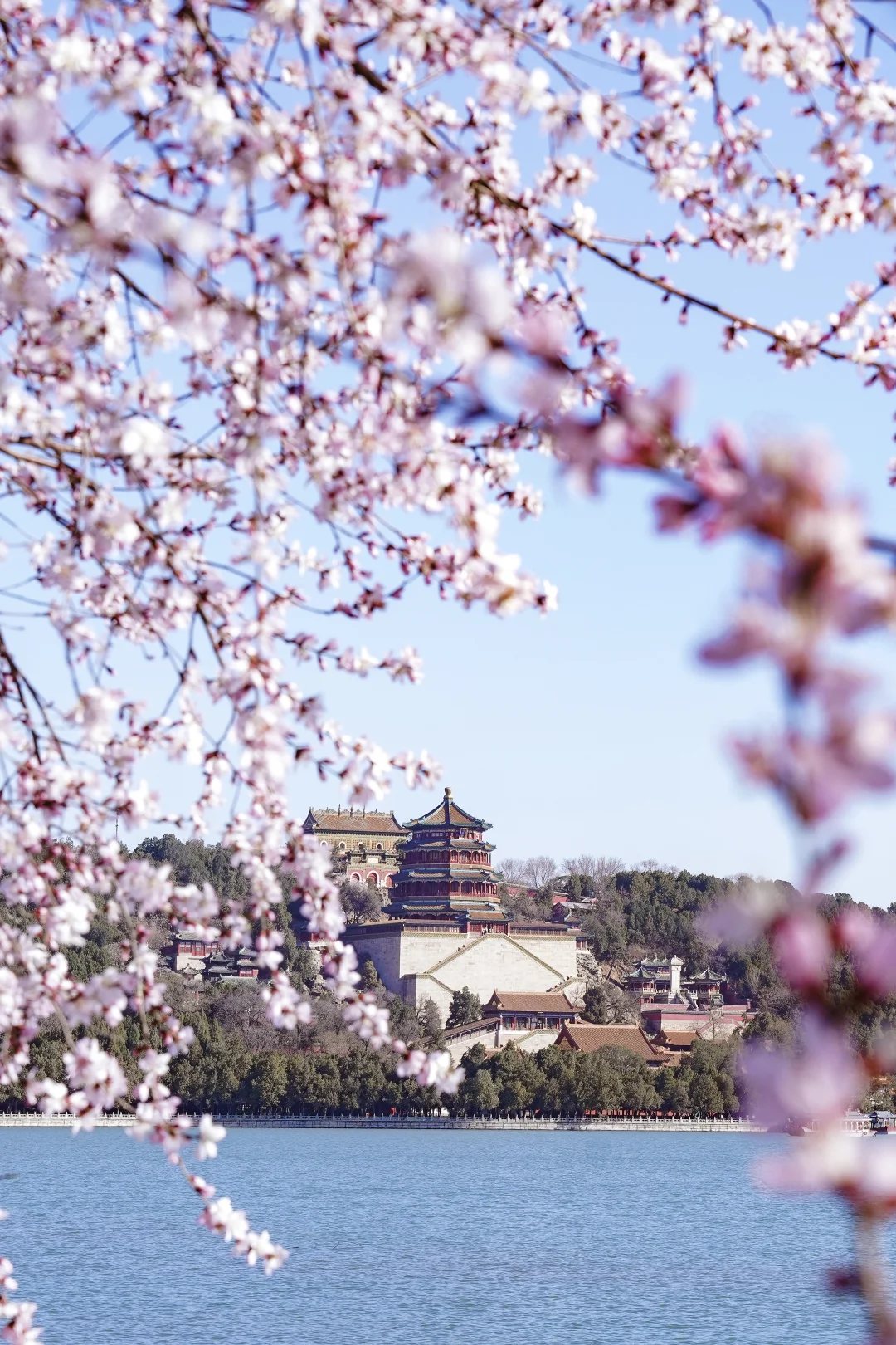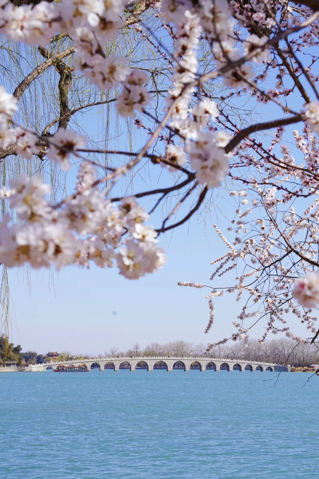 整条西堤都可以拍到桃花,一定要走完一圈,这样可以分别拍到❗️佛香阁❗️十七孔桥❗️远处的玉峰塔与桃花的合影
