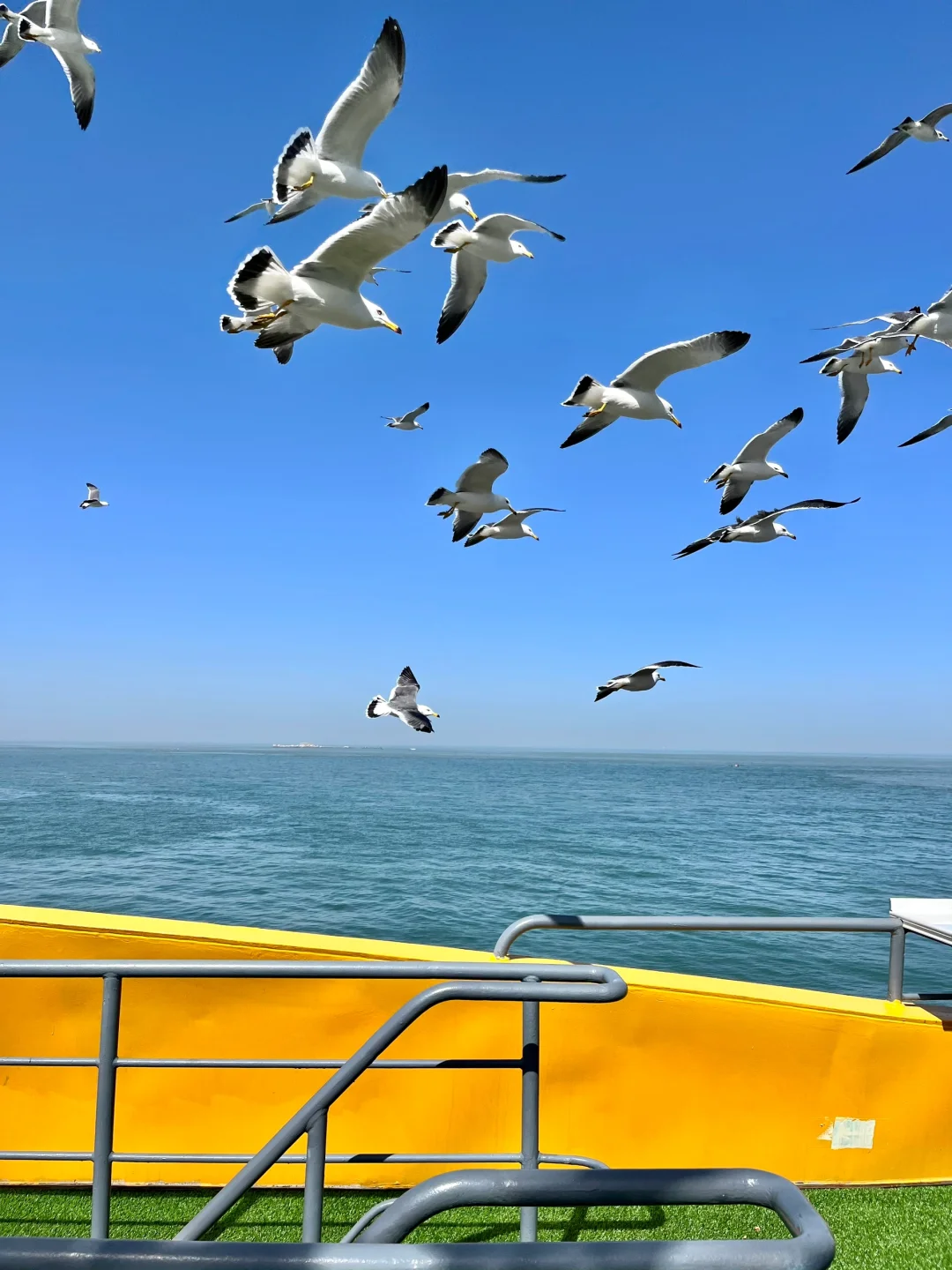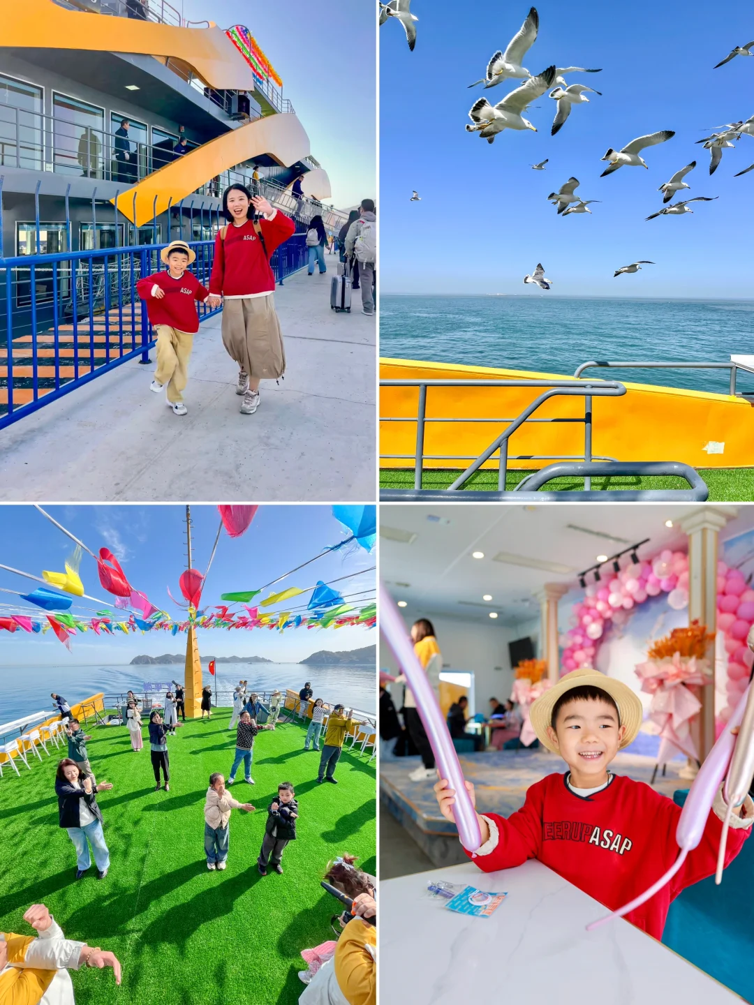 ❤️第一天主要游览两个小岛,在游轮上有沙发休息,还能看电影,参加互动游戏,到甲板上喂海鸥。晚上住南隍城岛的渔家乐,南隍城岛位于黄、渤海的交汇处。傍晚时分,可以在佛陀山顶观赏一场浪漫的海岛日落。这附近的海有很多渔民养殖了海产品,能看到扇贝和海带的打捞筛选过程,还挺有意思的。