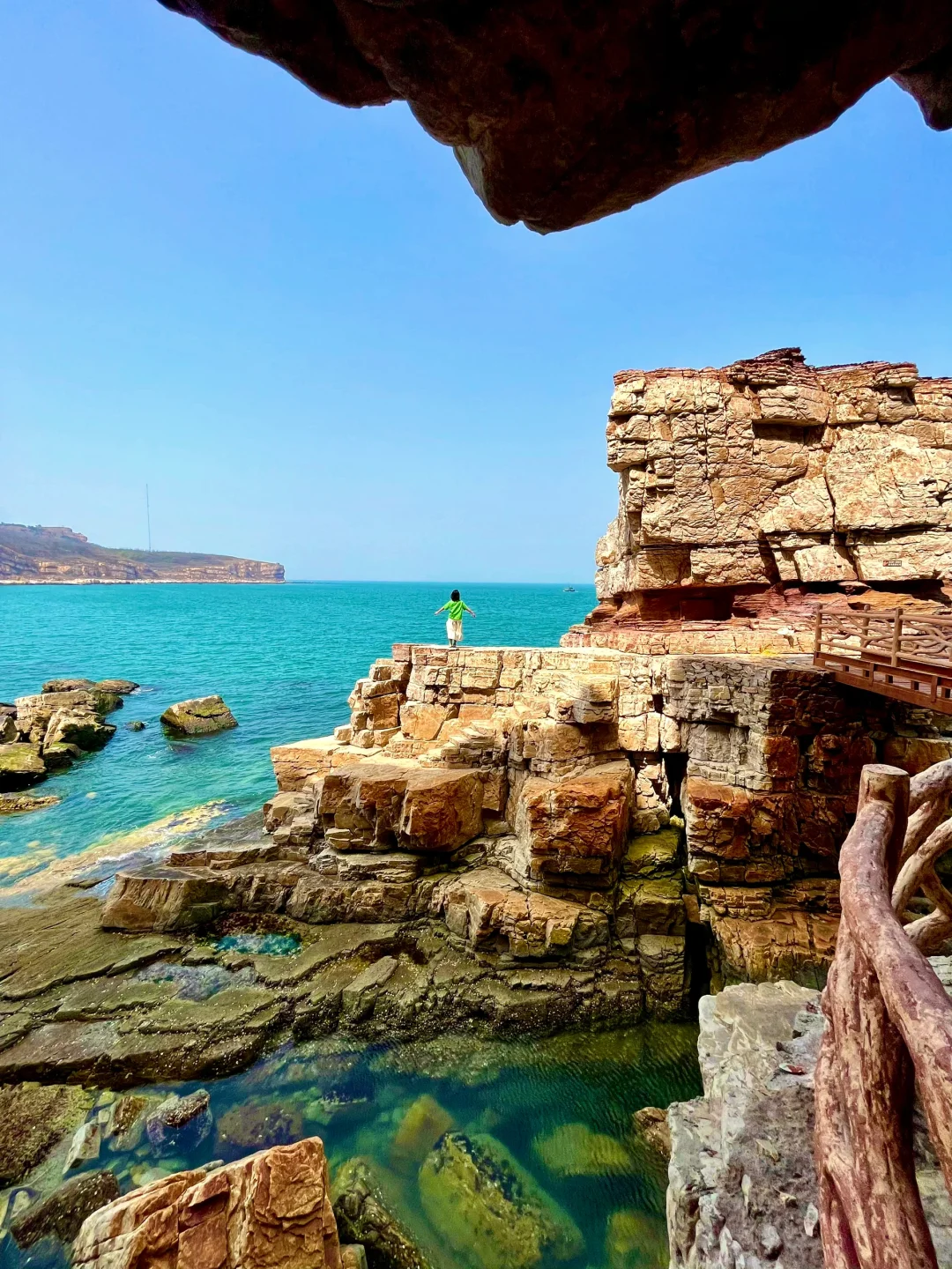 ❤️第二天在砣矶岛玩,木栈道旁边的海岸线可以赶海,给孩子带些赶海工具。在码头旁有一座小岛砣子岛,往里走可以拍到网红绝美山洞。晚上住长岛。