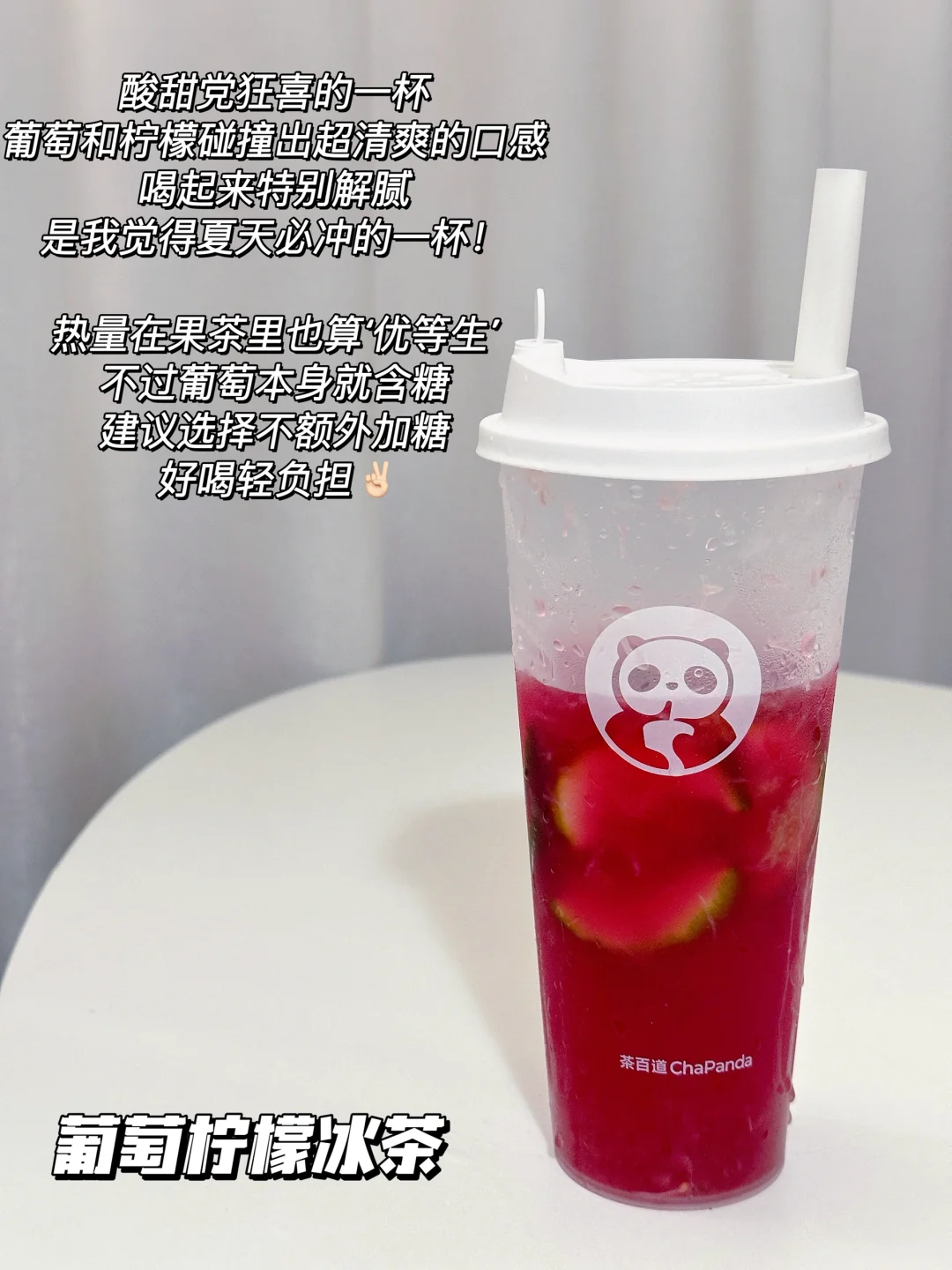 酸甜党狂喜的一杯,葡萄和柠檬碰撞出超清爽的口感,喝起来特别解腻,是我觉得夏天必冲的一杯! 热量在果茶里也算‘优等生’,不过葡萄本身就含糖,建议选择不额外加糖,好喝轻负担✌🏻