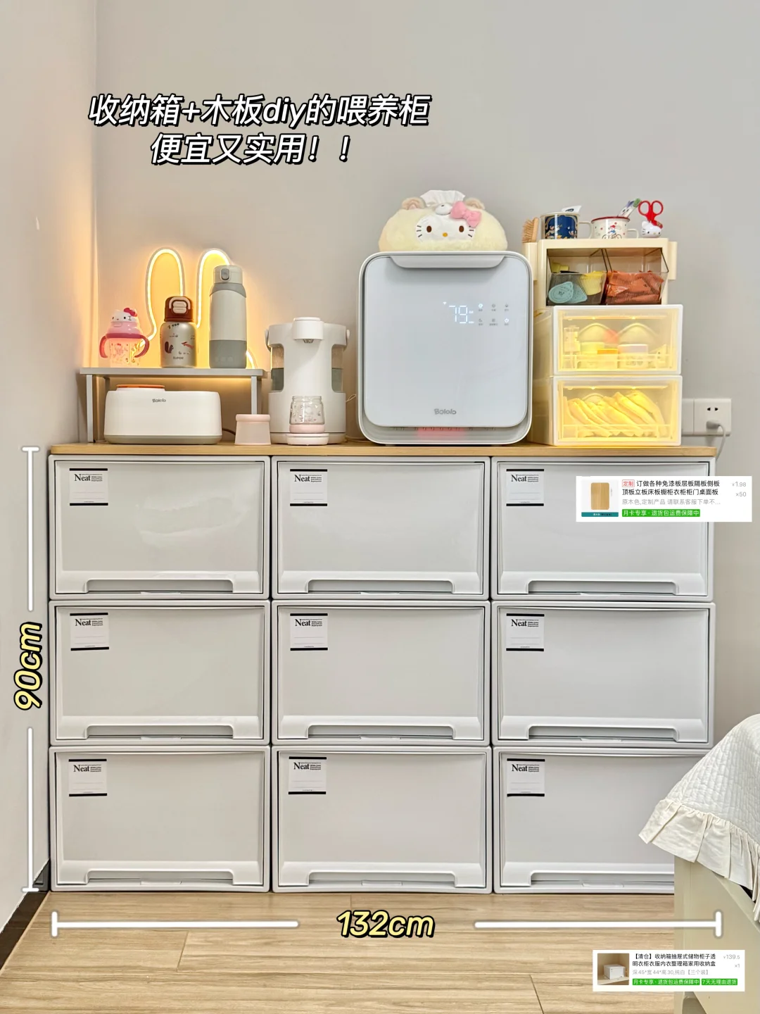 自制收纳箱床尾柜,搞定宝宝收纳和喂养台