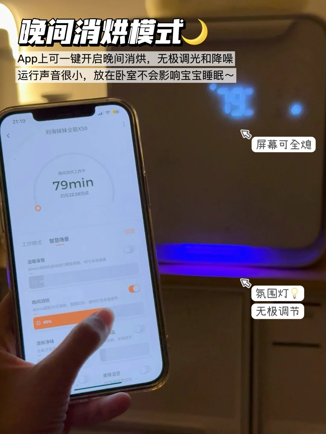 有快速模式15分钟就能消烘好,放卧室没啥声不影响睡觉,还能连手机操控,整体我挺满意的