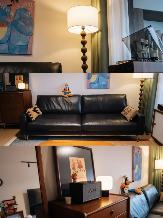 中古风+黑色沙发+彩色小物件=客厅的氛围感密码