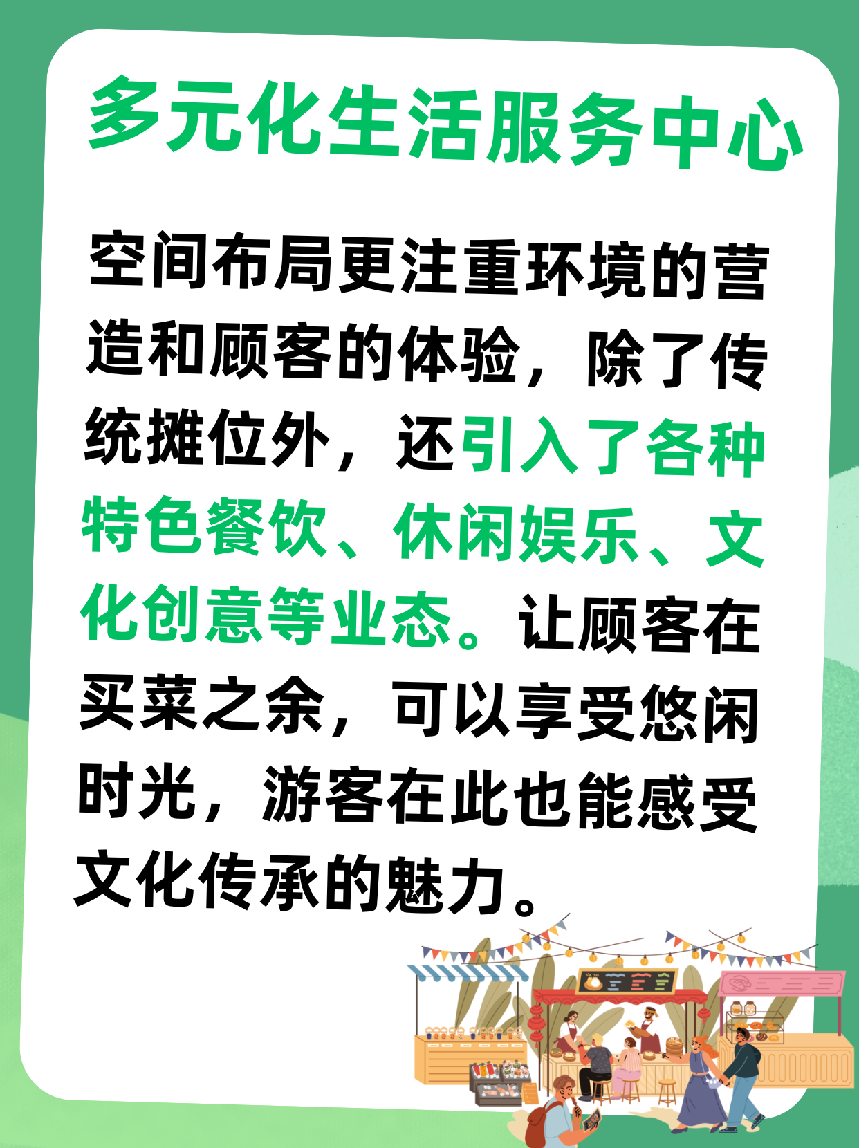 1.0:传统马路市场 2.0:室内规范化市场 3.0:智慧农贸市场 4.0:多元化生活服务中心