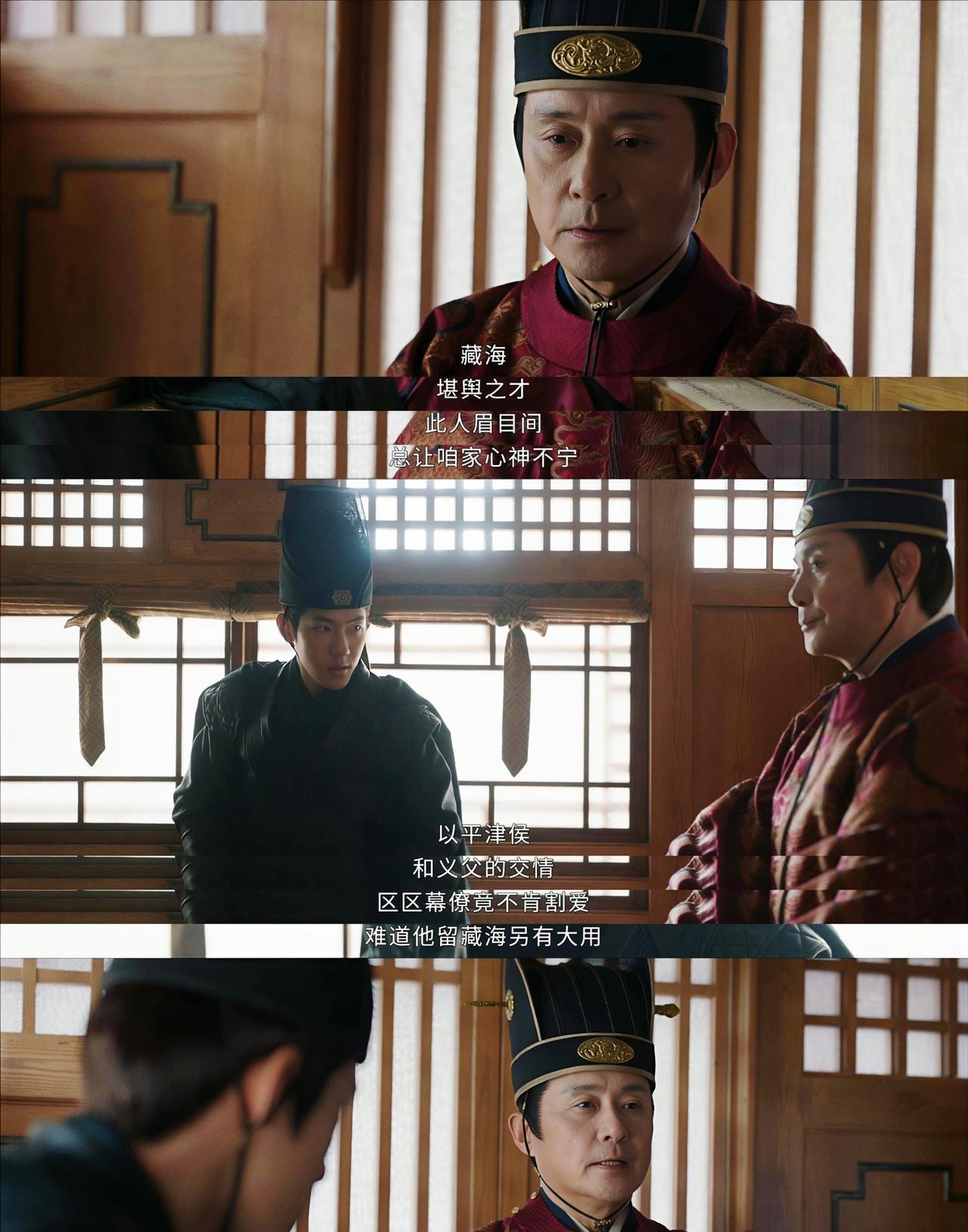 从老卒和老曹的对话其实可以品出他们这个铜鱼联盟其实非常脆弱充满了猜忌和嫌隙。 他们守着相同的秘密,却都在暗戳戳为自己储备人才,极其不希望对方走在自己前面。 彼时藏海因为皇陵事件已经名噪京城,应该也早就引起了一直在搜罗堪舆人才的老曹的注意,毫无疑问,老曹这里是希望老卒能够将人才转交给自己,或者退一步说,至少能够共享藏海的才能。 这个时候老卒的表现在老曹的眼里等同于他这个老同学要独吞癸玺,而这种私心估计过去十年间也有过显现,所以才有了那句“十年了庄芦隐心犹不死啊” (后来我们知道其实老卒一度已经死心了,只不过藏海的出现又把那颗心给重新唤醒了,笑) 在确定确实无法得到藏海的情况下,秉持着我得不到也绝不让你得到的私心,老曹决定直接干掉藏海。这里不得不说这陆烬不愧是老曹的义子,太太太太太了解他义父了。 深刻领会了所谓“查明身份”是假,让“庄芦隐用不了”才是他老板真正的意图。 我这里还得提一笔的是藏海的敏锐与聪明绝顶,仅仅这一次三方会面,他就迅速察觉到这两个人之间的暗潮涌动,并在后续迅速策划真假陆烬事件挑拨离间扩大庄曹二人的矛盾,利用他们对癸玺的贪欲来进一步击碎两个人之间脆弱的同盟关系。 藏海传这部权谋剧(或者说反权谋剧)好看就好看在这里,他没有上帝视角,无法做到在故事的一开始就布好全局。 他的复仇计划是动态的。 随着藏海站立位置的变化,接受信息的逐渐明朗化,应对不同情况随机应变制定新的计划。 总目标是复仇,但怎么复仇,要根据现实来应变,特别有真实感,也特别能够将观众带进去。 但凡这两个老登没有独吞的私心,也不至于被藏海离间至此,但既然对癸玺生出了欲望,就绝不可能无私地与朋友分享。 所以三老登联盟从一开始就是一场对彼此的骗局。 是老同学没错,但他们早已不是朋友,不过是借着朋友之名的利益集团罢了。 所谓人性,无非如此。