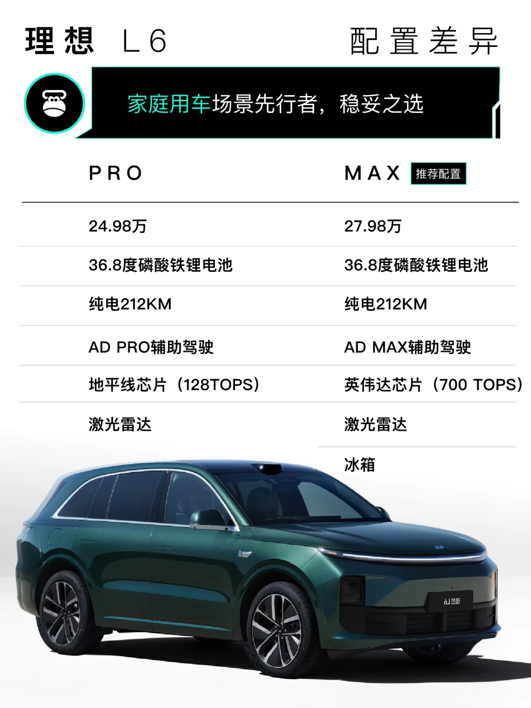 家用口碑不错,经典稳妥的选择,如果你能接受纯电续航212km,日常通勤距离短并且每天可以家充,那理想L6是不错的选择