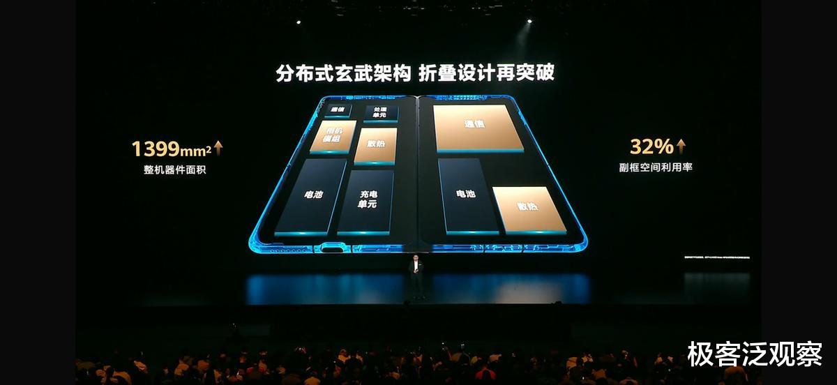 华为Mate X6通过对折叠机主框和副框的零部件全新布局设计,运用多种创新材料,带来了前所未有的轻薄可靠。其采用的分布式玄武架构,对射频单元进行了前所未有的跨框布局,使副框空间利用率提升32%,为天线、散热等元器件提供更充裕的排布空间。再加上航天级S级玻璃纤维、高性能防弹衣材料的加持,在保证轻薄手感的同时,抗冲击与耐磨性能也大幅提高。而创新碳纤维支撑层、火箭钢、超强机翼铝等创新材质的运用,更让手机整体可靠性得到全方位加强。