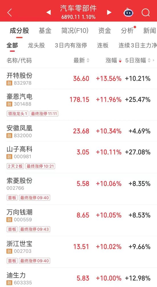 汽车零部件板块大涨
