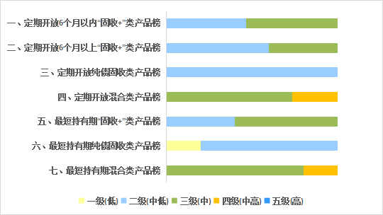 从榜单产品结构来看,“固收+”类及混合类产品的“同类不同级”现象较为突出,上榜产品风险等级分布更为分散。