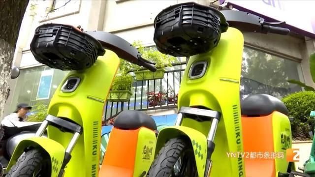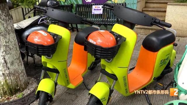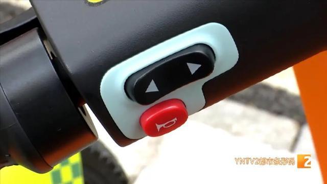 在五华区文林街路口,已经有不少嫩绿色+亮橙色的“春城出行”踏板型共享电单车。这款共享电单车配有头盔,同时有转向灯和喇叭。不同于其他共享电单车带有的转铃,这种喇叭只需要轻按,就可以发出响亮的提示声。