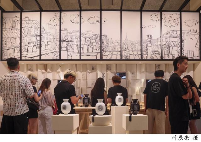 活动现场不仅展出全系列香氛作品,更限量发售城市限定款香氛蜡烛。上海限定版以江南桂花融合绿茶的清雅香气,烛杯设计融入复古石库门纹样,尽显海派风情;而巴黎版本则以经典西普香为基调,点缀淡淡薰衣草气息,仿佛塞纳河畔随风飘来的温柔气息。