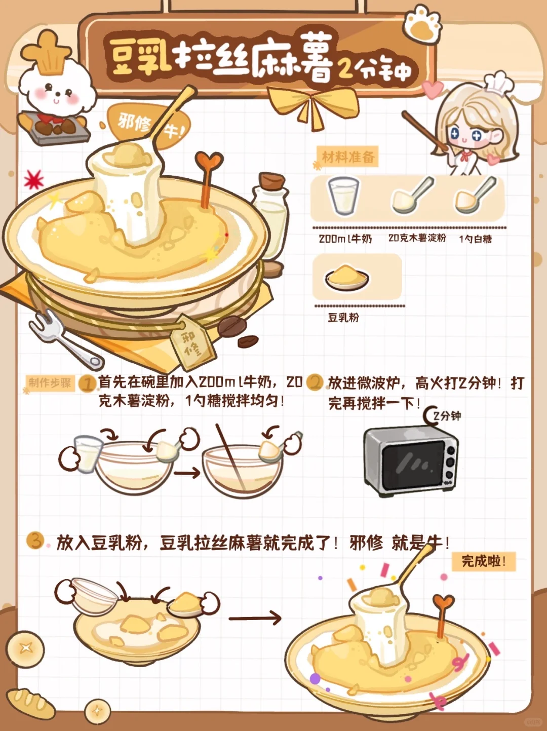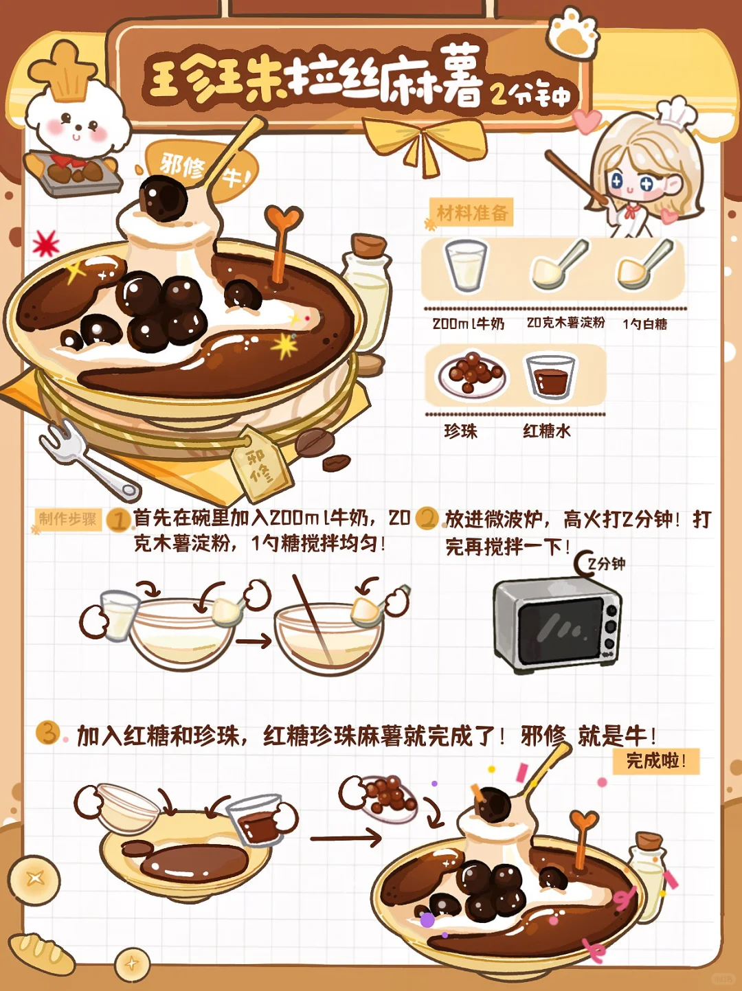 2️⃣分钟做好微波炉拉丝麻薯!邪修甜品好简单