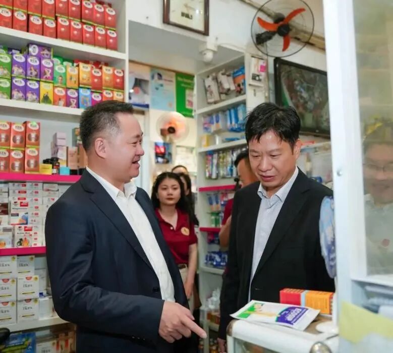 广药集团党委书记、董事长李小军和白云山何济公党委书记、厂长孟君在越南市场调研现场