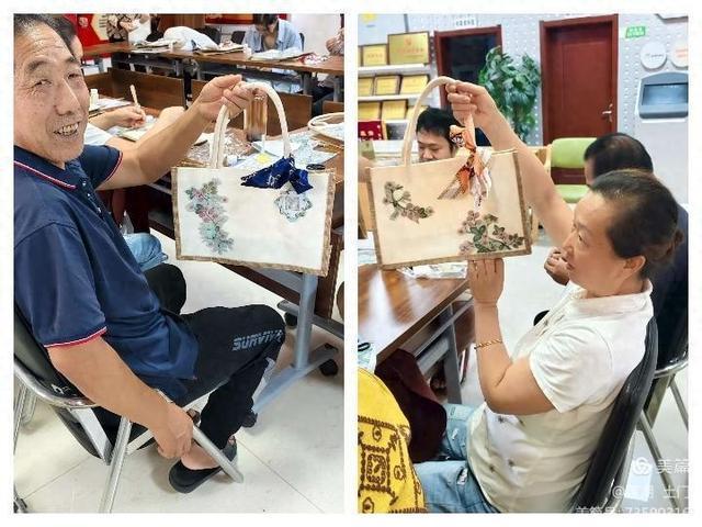 活动中,在志愿者老师的悉心指导下,居民们纷纷动手尝试。他们全神贯注地投入到创作中,有的认真比划尺寸,裁剪图案,力求精准;有的充分发挥自己的想象力,在手提包上添加个性化的装饰,如蝴蝶结、聚宝盆等。现场气氛热烈而融洽,大家相互交流经验,分享彼此的创作灵感,在一片欢声笑语中,一个个别致的帆布包呈现在大家眼前。