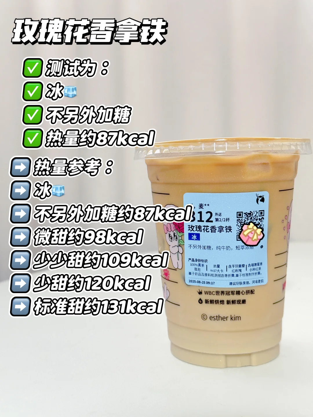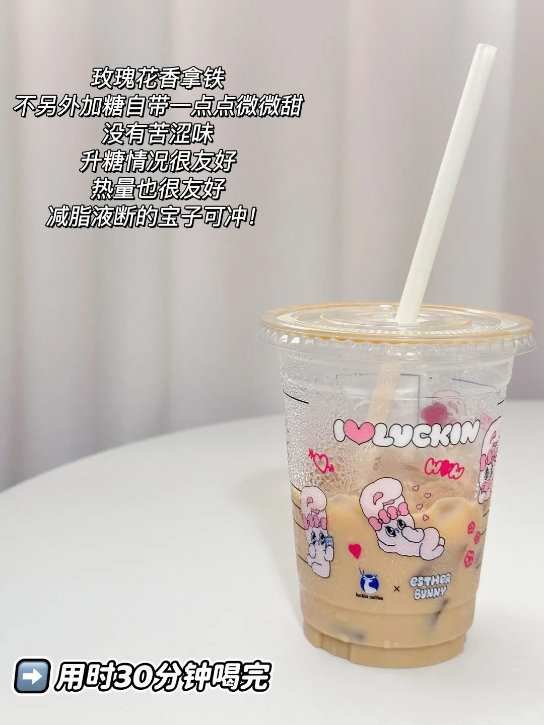 玫瑰花香拿铁不另外加糖自带一点点微微甜,没有苦涩味,升糖情况很友好,热量也很友好,减脂液断的宝子可冲!