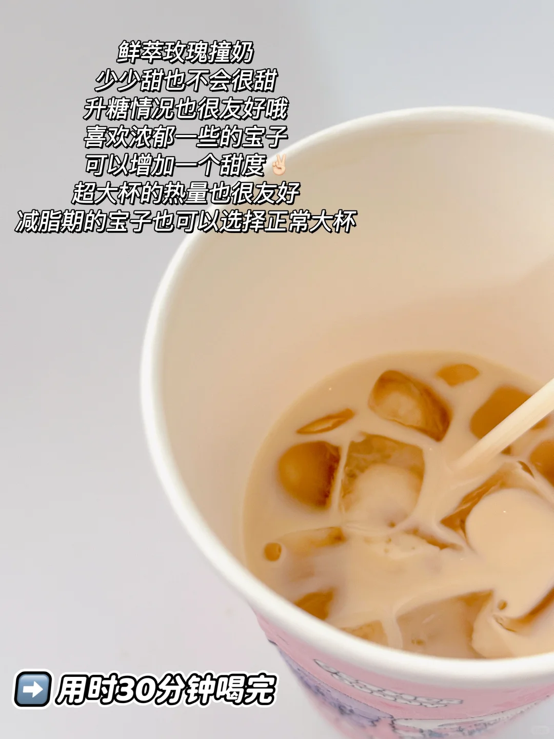 鲜萃玫瑰撞奶少少甜也不会很甜,升糖情况也很友好哦,喜欢浓郁一些的宝子可以增加一个甜度[耶R]