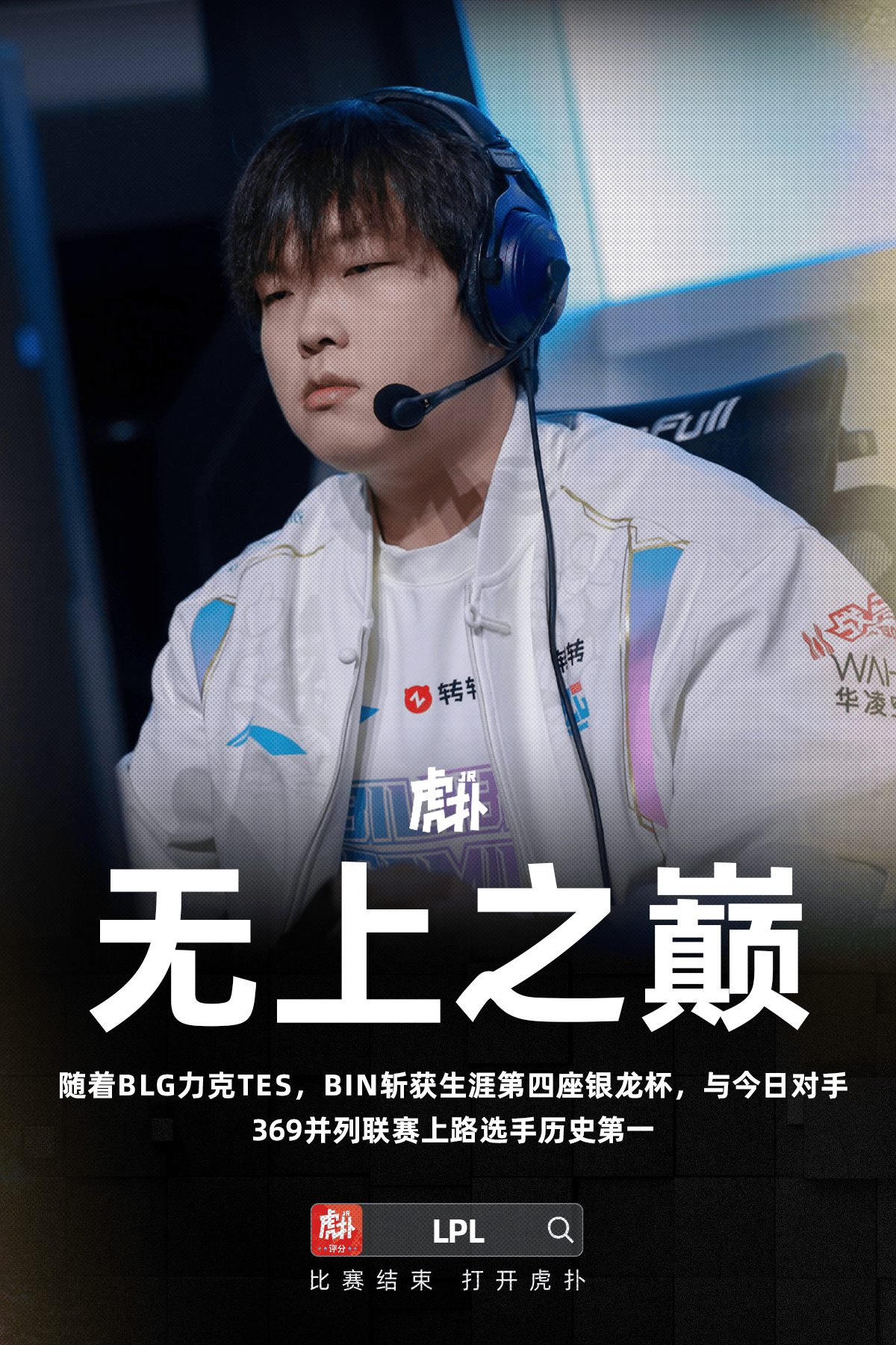 虎扑09月21日讯2025LPL总决赛BLG以3-2战胜TES夺得冠军,同时Bin斩获生涯第四座银龙杯,与369并列LPL上单位历史第一,此前成绩如下: