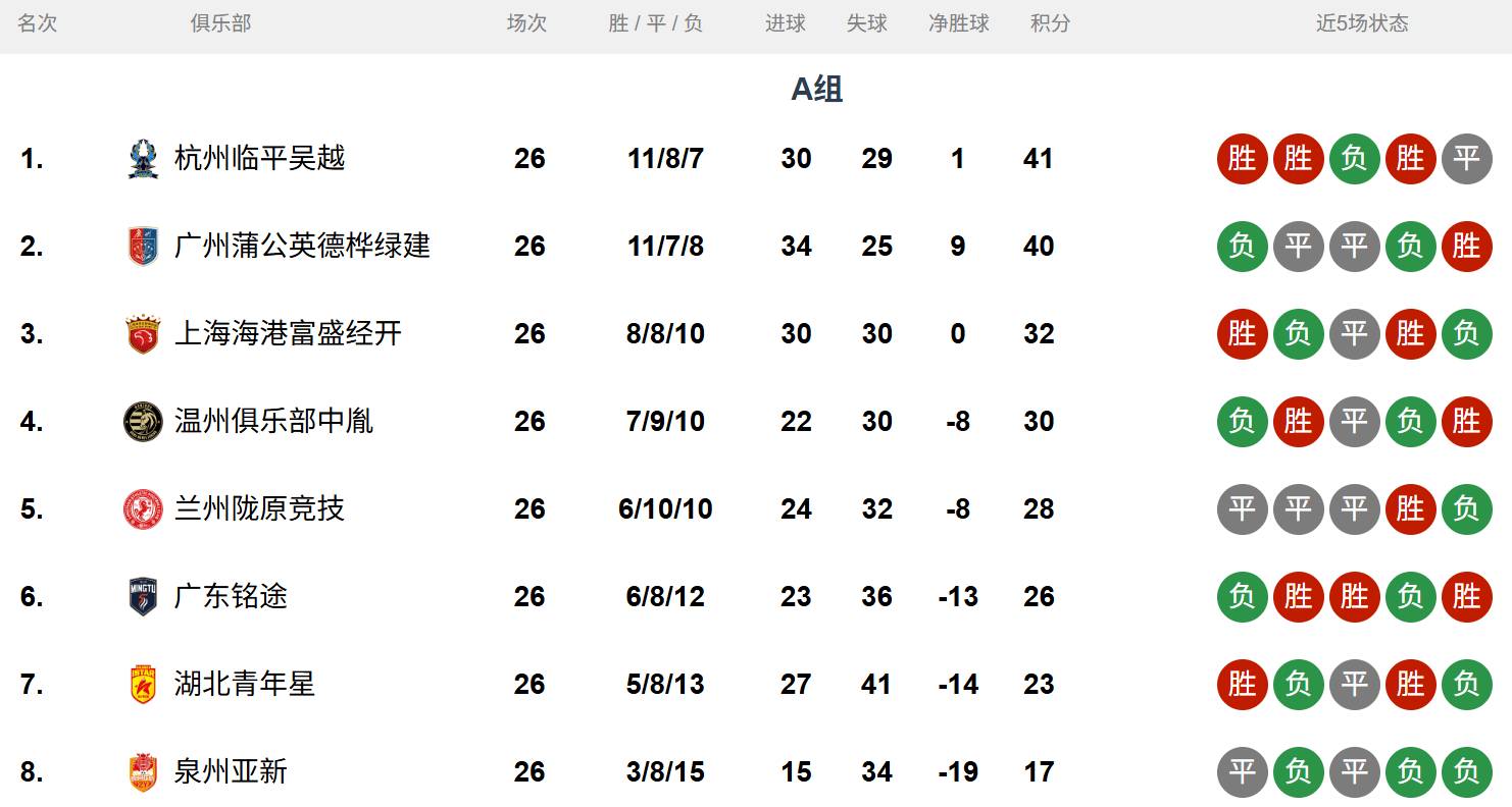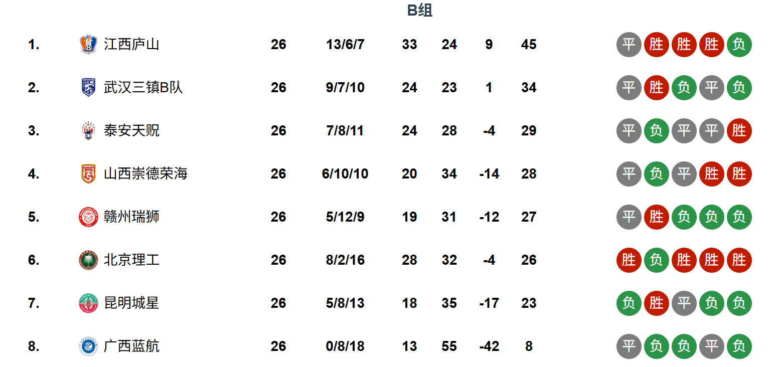 虎扑09月21日讯2025中乙联赛第26轮的比赛本周末完赛,本轮战况如下: