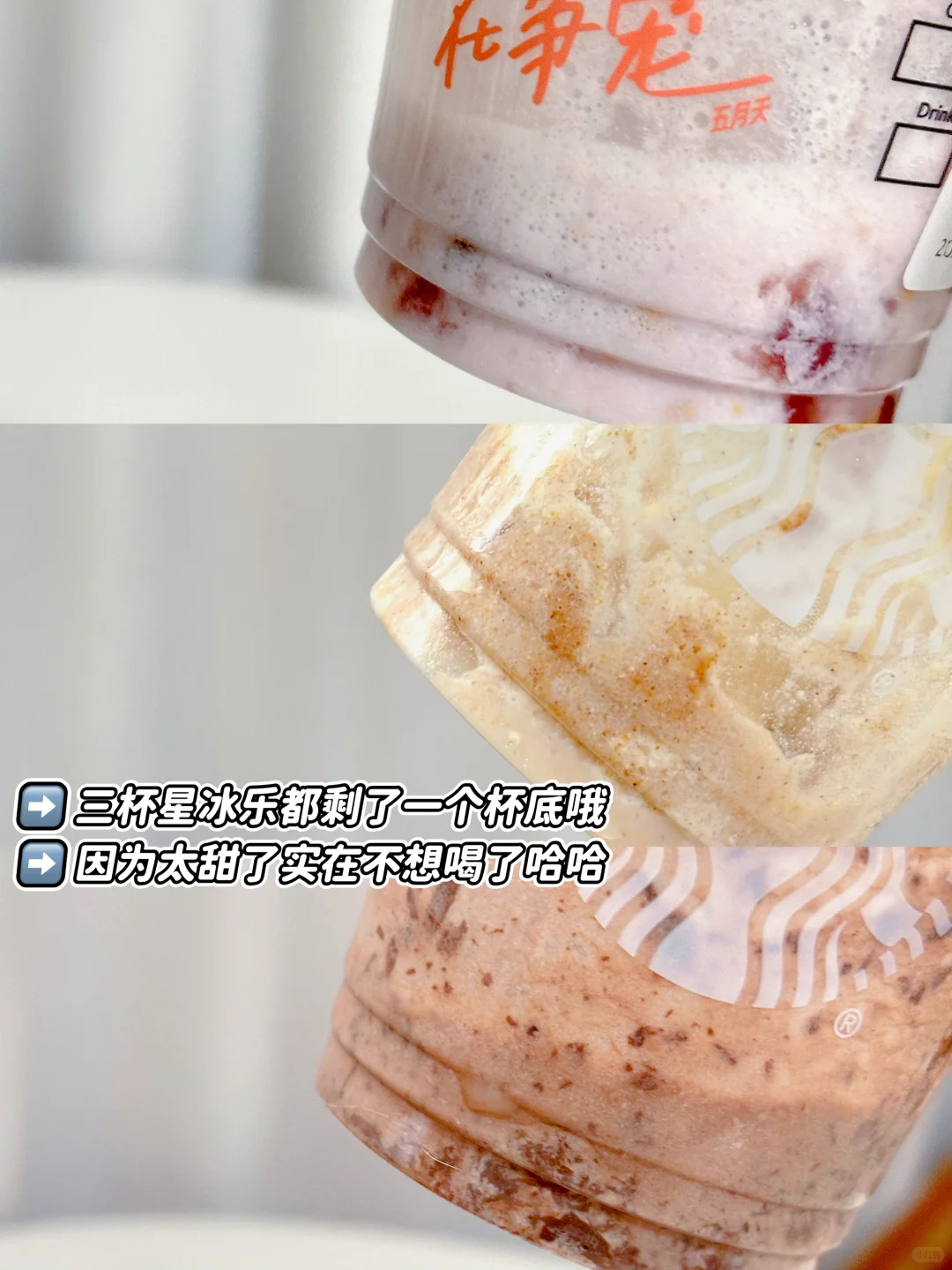 三杯星冰乐都很甜,尤其是草莓那杯非常甜哦!适合超级耐甜的宝子哈〰️豆香和比利时的也比较甜,但还可以,我觉得比利时黑巧的更好喝[耶R]
