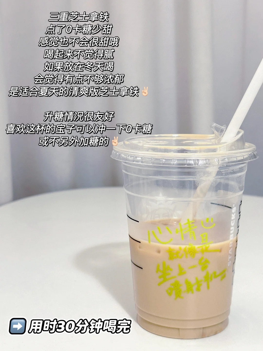 三重芝士拿铁点了0卡糖少甜,感觉也不会很甜哦,喝起来不觉得腻,如果放在冬天喝会觉得有点不够浓郁,是适合夏天的清爽版芝士拿铁✌🏻