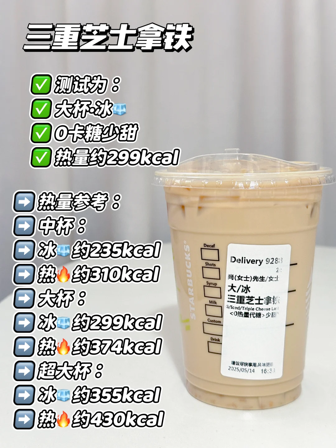 测试为:大杯·冰🧊0卡糖少甜 热量约299kcal