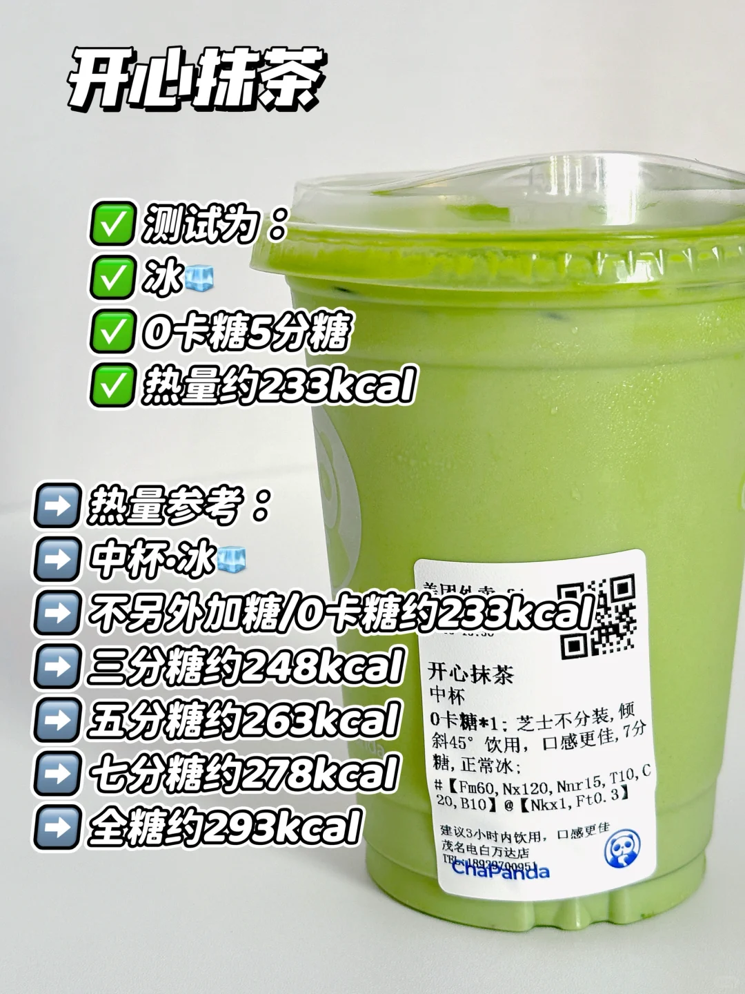 测试为:冰🧊0卡糖5分糖 热量约233kcal