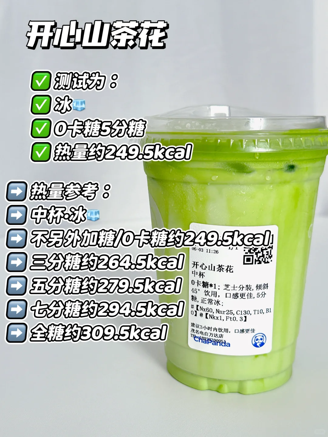 测试为:冰🧊0卡糖5分糖 热量约249.5kcal